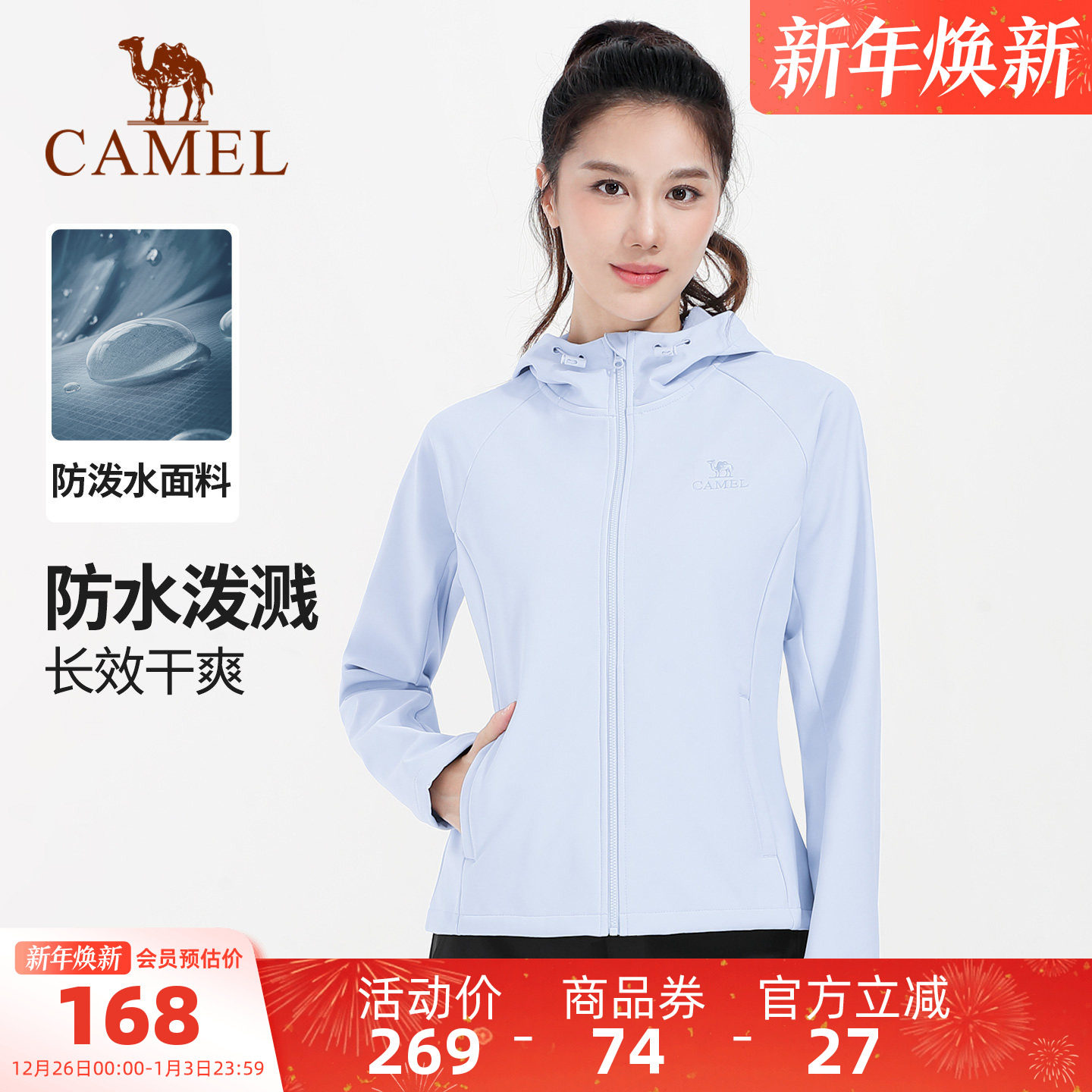 骆驼瑜伽服男女款秋冬季加绒运动服长袖连帽外套防泼水防风冲锋衣