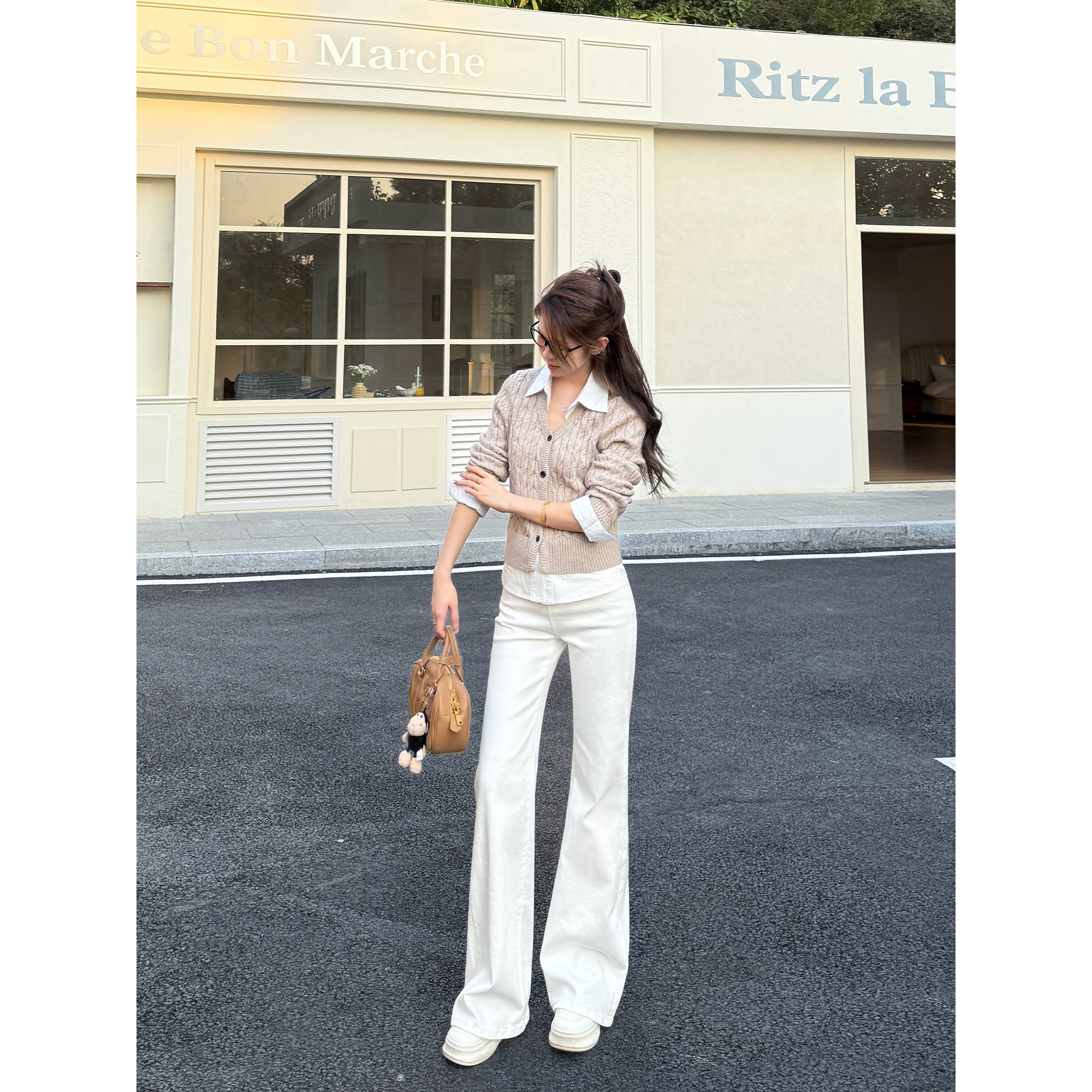 王家有鱼2026直筒微喇不贴腿早春新款百搭时尚气质白色牛仔裤子女