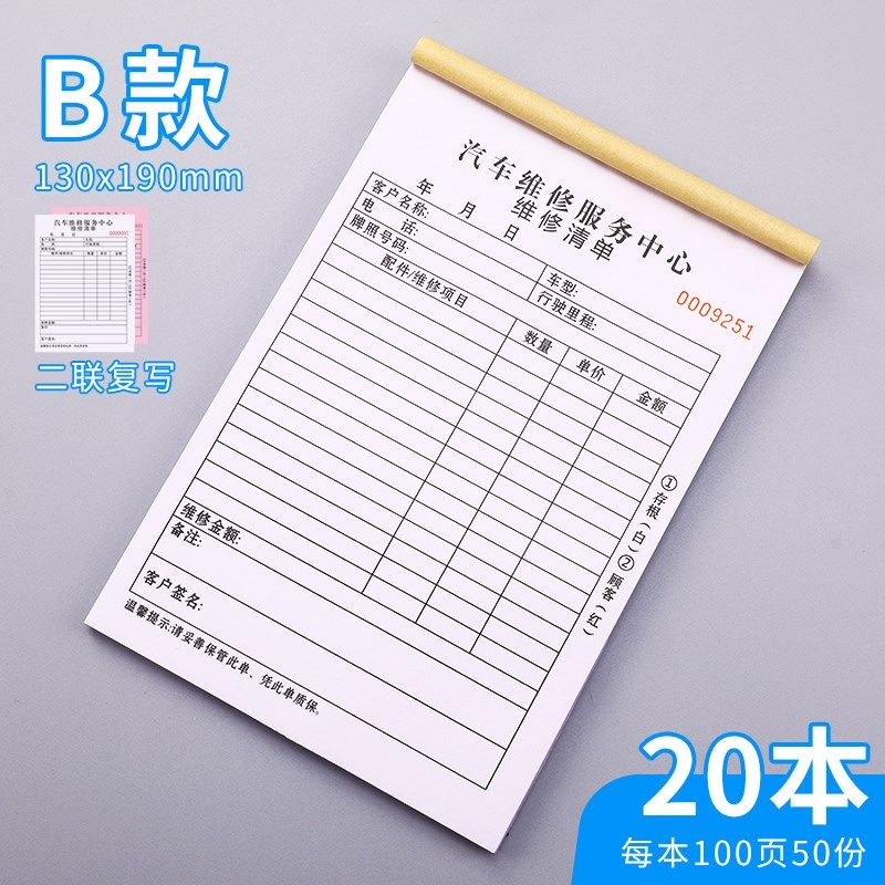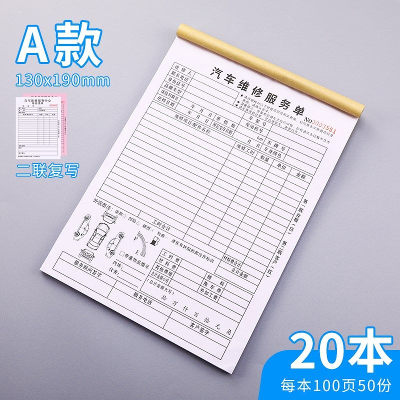汽车维修单二联修理厂接车单汽修厂派工施工服务单定做4S店维修服