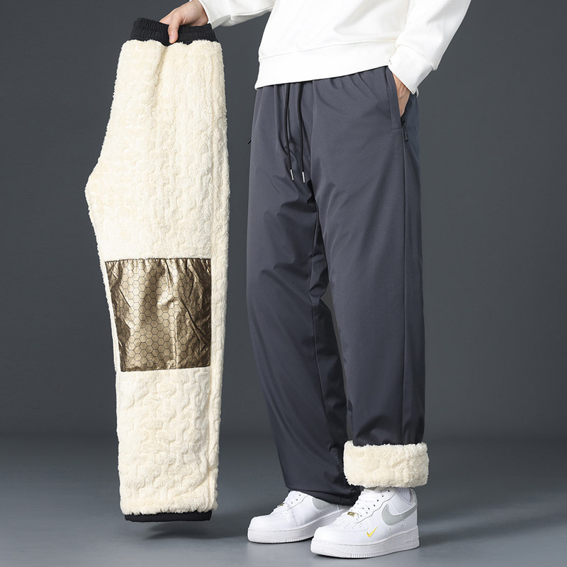 棉裤男士秋冬季加绒加厚直筒休闲长裤中老年爸爸装保暖羊羔绒裤子
