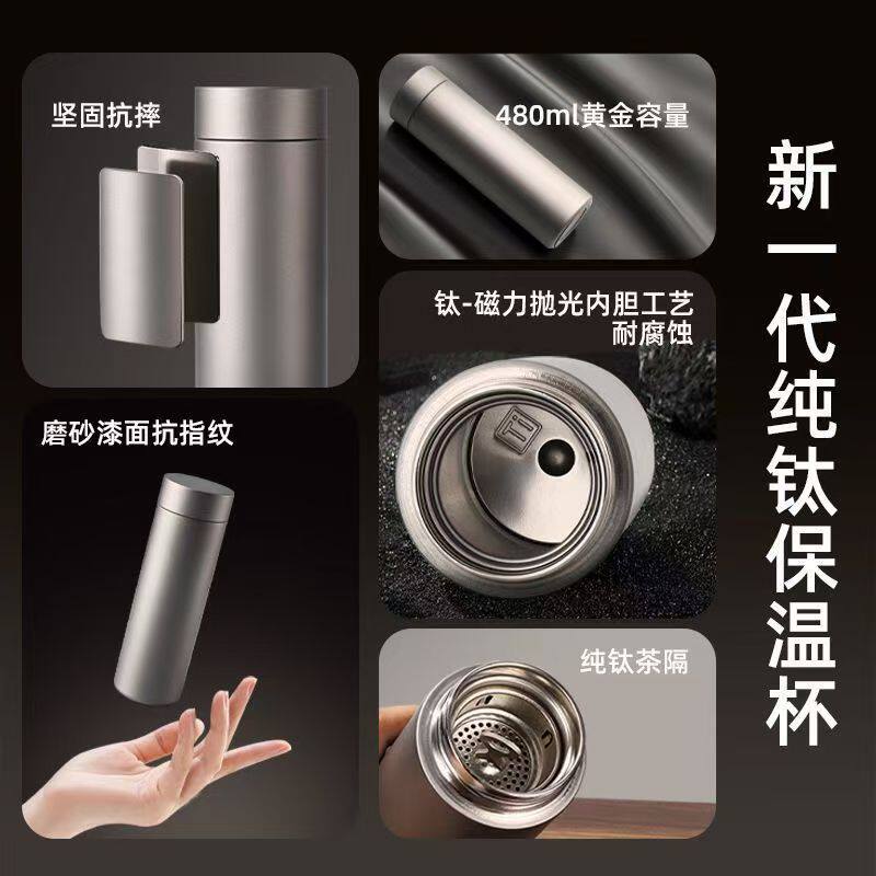 纯钛保温杯商务男女茶水分离便携水杯高档礼品茶杯双层钛杯指纹