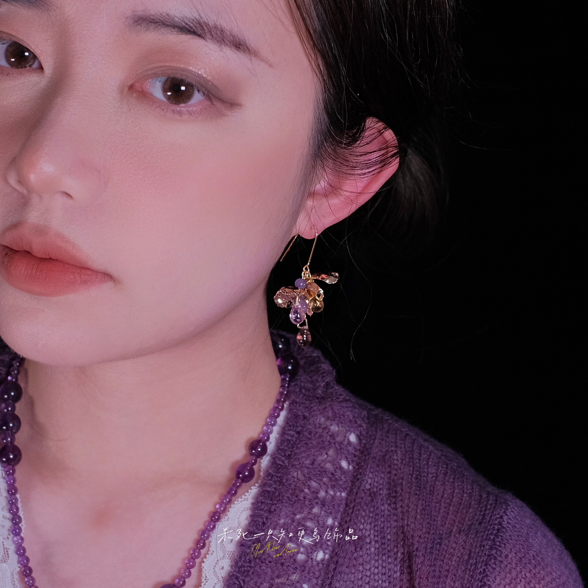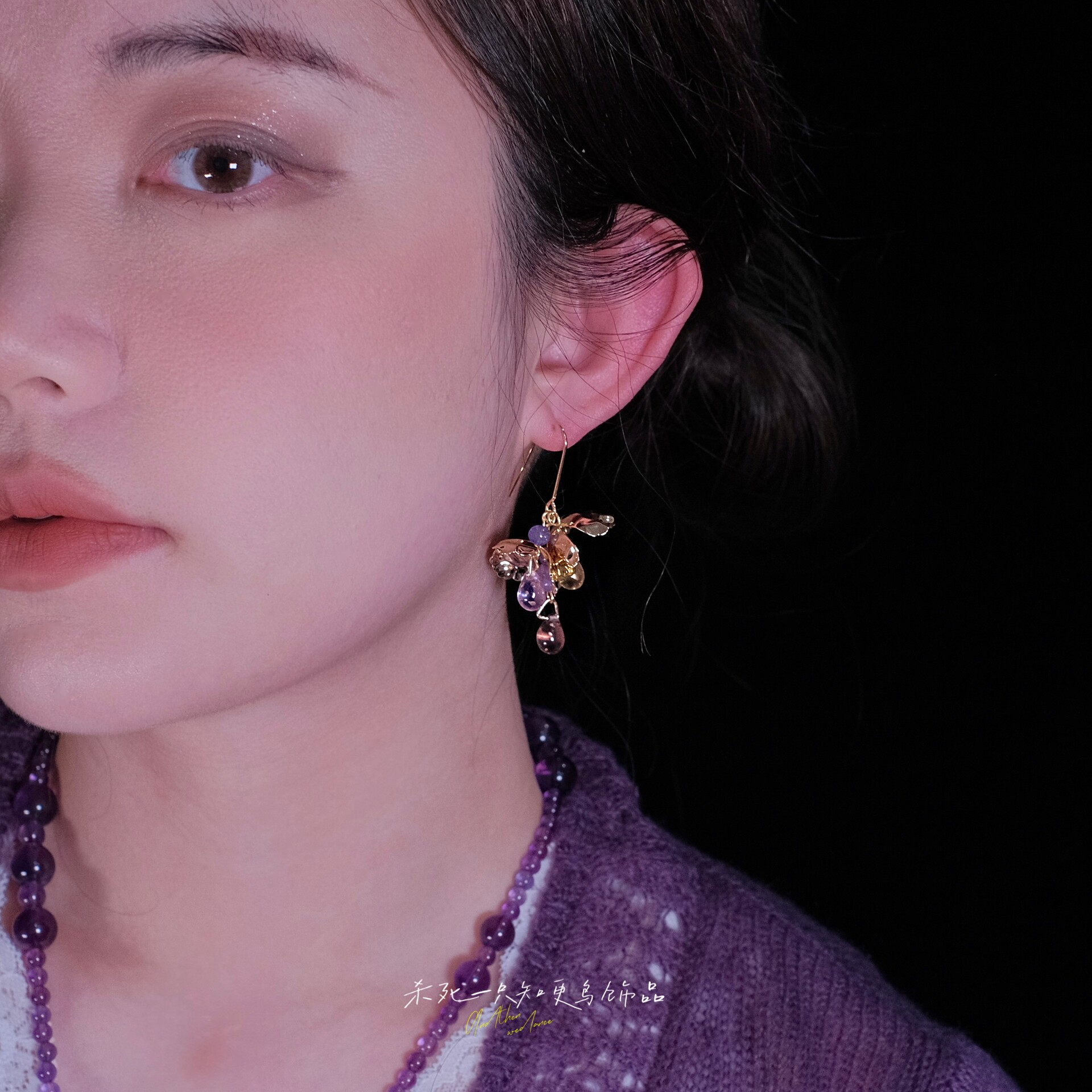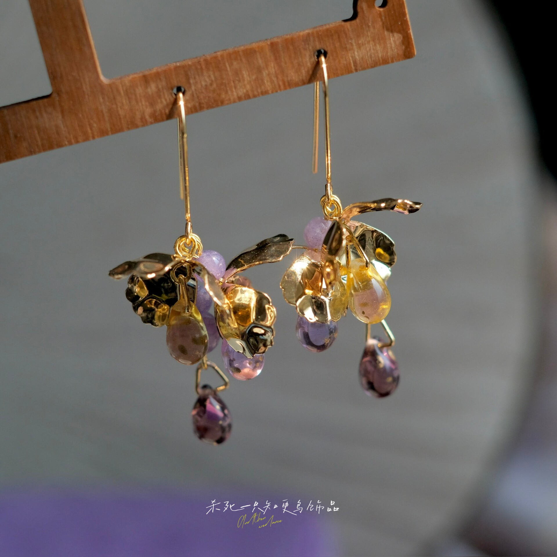 《拂紫眠》原创小众独特清冷感文艺金色花朵紫玉髓流苏耳环耳饰女