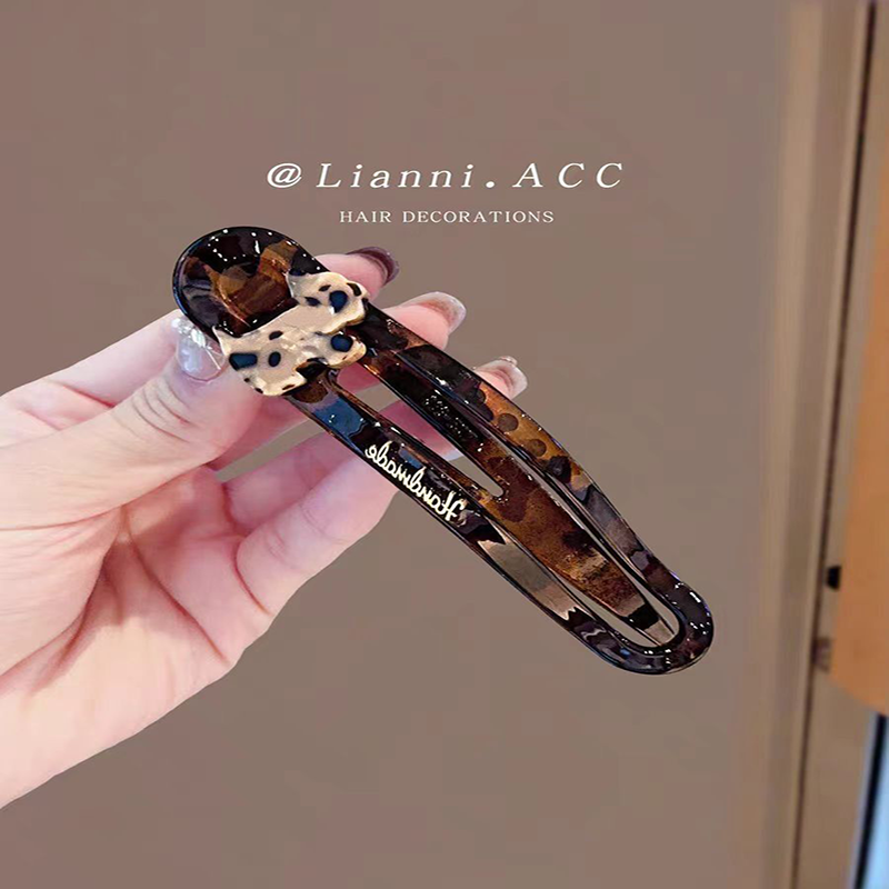少女小金属刘海碎发一字鸭嘴造型侧边美妆发夹女发卡黑色夹子发饰