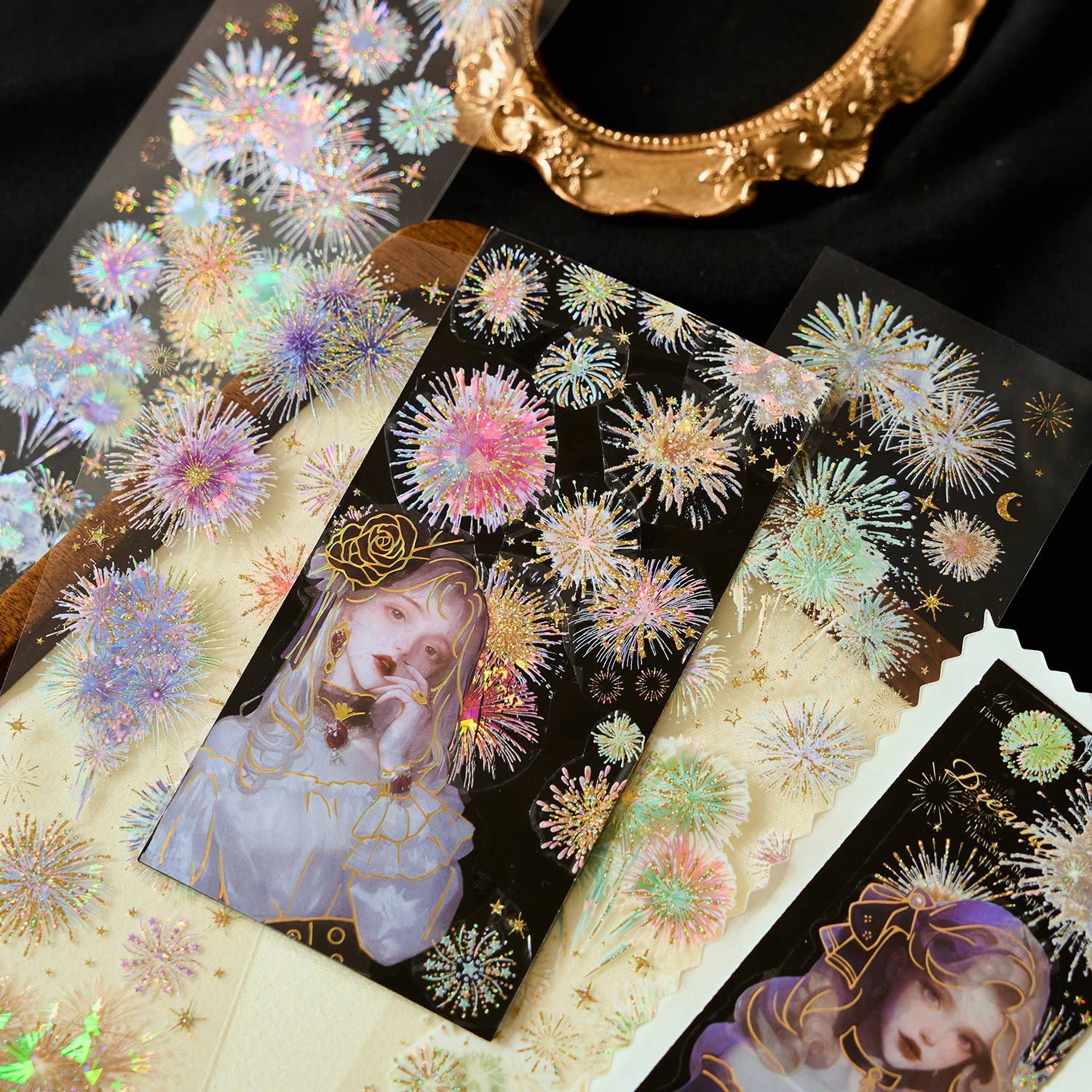 绚烂如昼PET平张贴纸 浪漫彩色烟花手帐DIY拼贴咕卡装饰素材贴画
