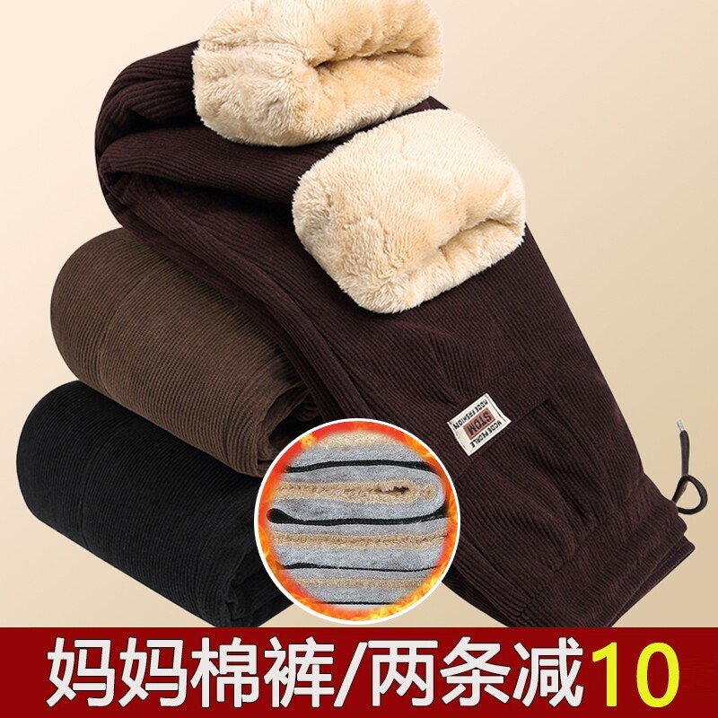 妈妈灯芯绒棉裤秋冬加绒加厚宽松中老年人女裤羊羔绒保暖裤子特厚