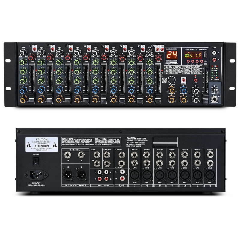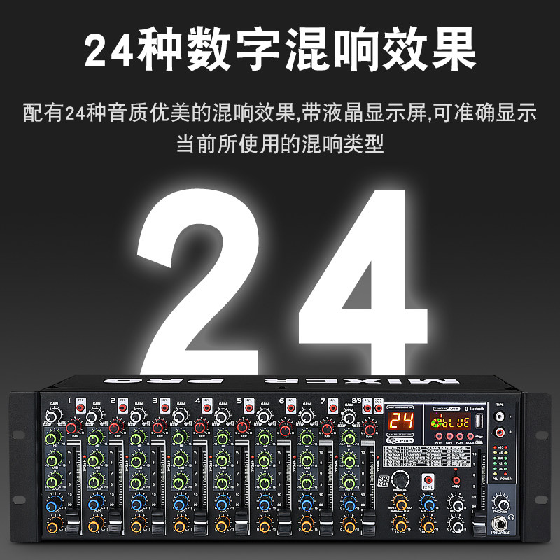 SR808嵌入式专业8路调音台机柜数字混音台双混响小型大型舞台