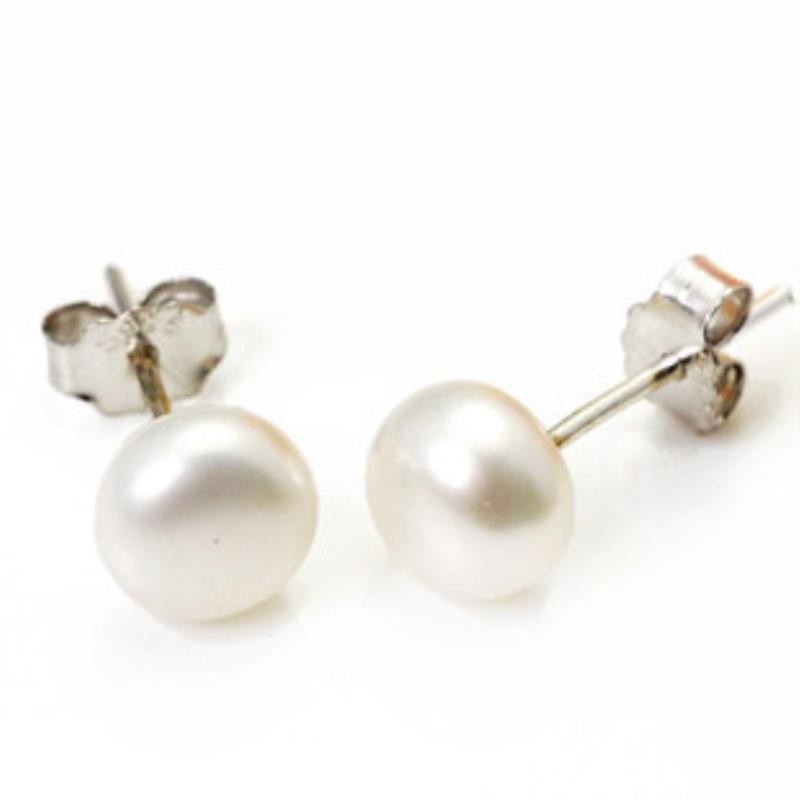 999纯银耳钉女施家珍珠馒头珠耳环扁圆高级气质法式复古轻奢耳饰