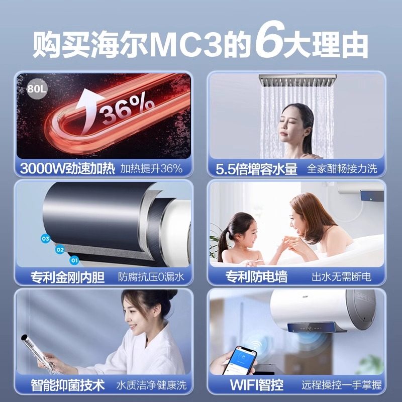海尔电热水器洗澡家用省电节能80L家用卫生间恒温速热节能MC3PRO