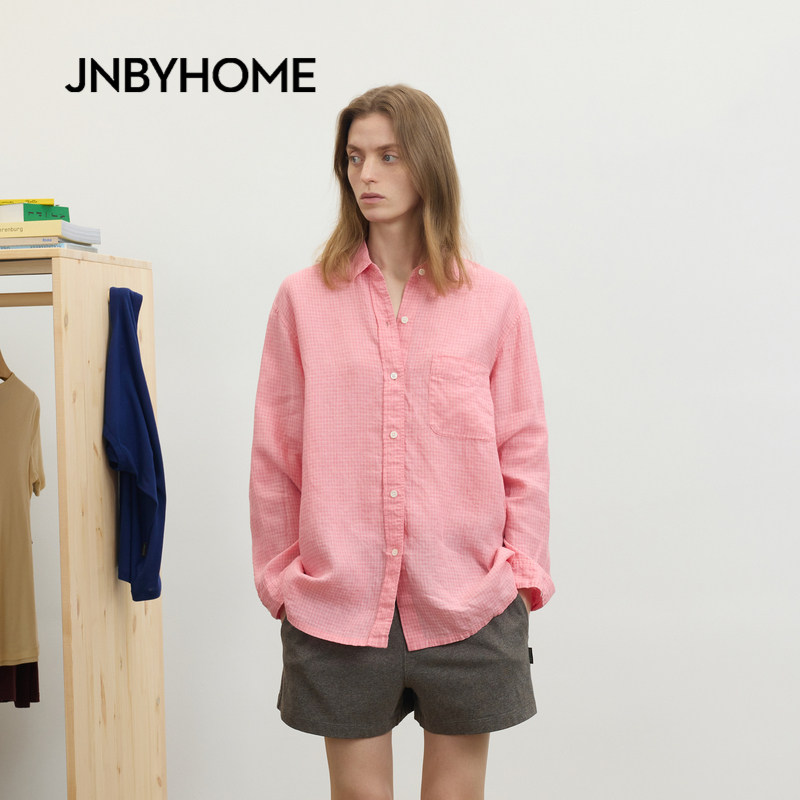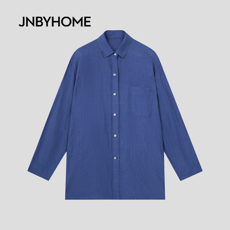JNBYHOME江南布衣26年春季长袖衬衫家居服翻领亚麻睡衣上衣情侣