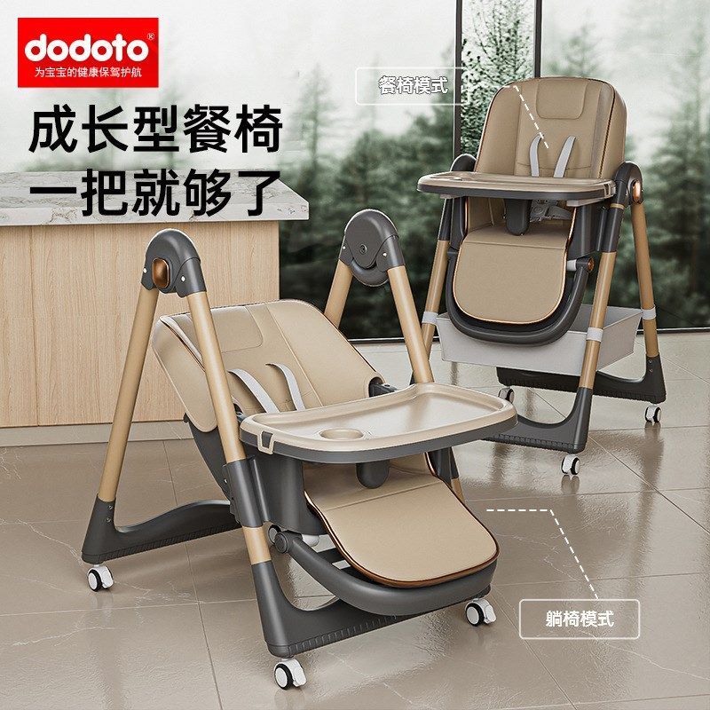多功能儿童餐椅宝宝可坐可躺可折叠吃饭座椅一键折叠双层餐盘餐椅