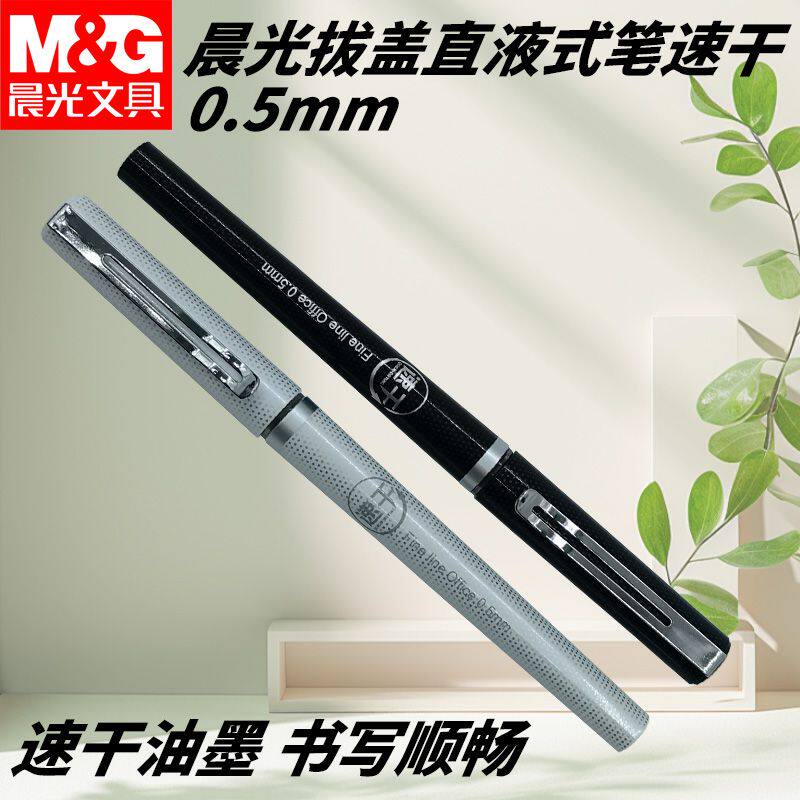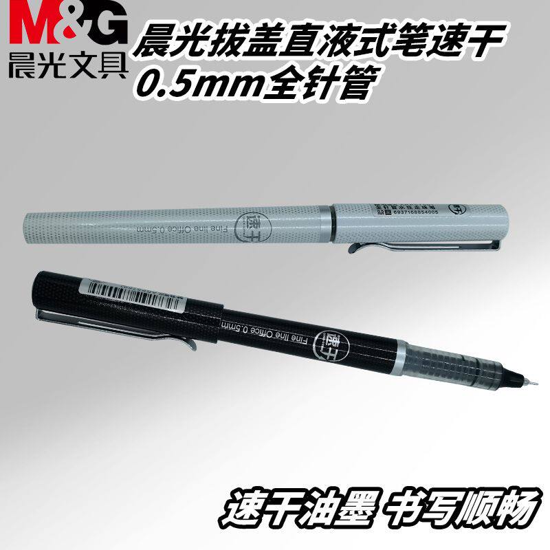 晨光ARP57501拔盖黑0.5全针管速干学生学习办公考试用笔直液式笔