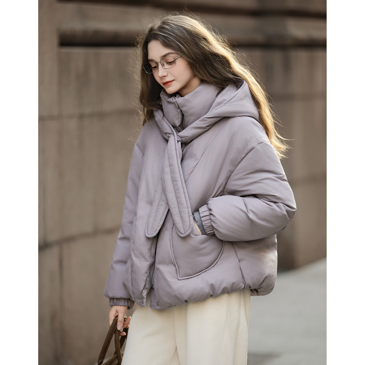 唐狮秋冬短款羽绒服女连帽紫色小个子穿搭宽松休闲风爱心少女tuTA
