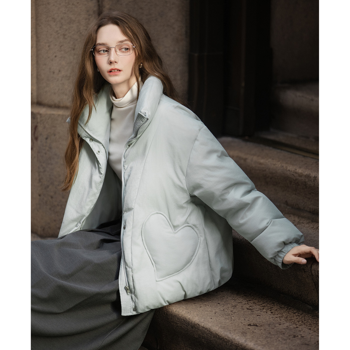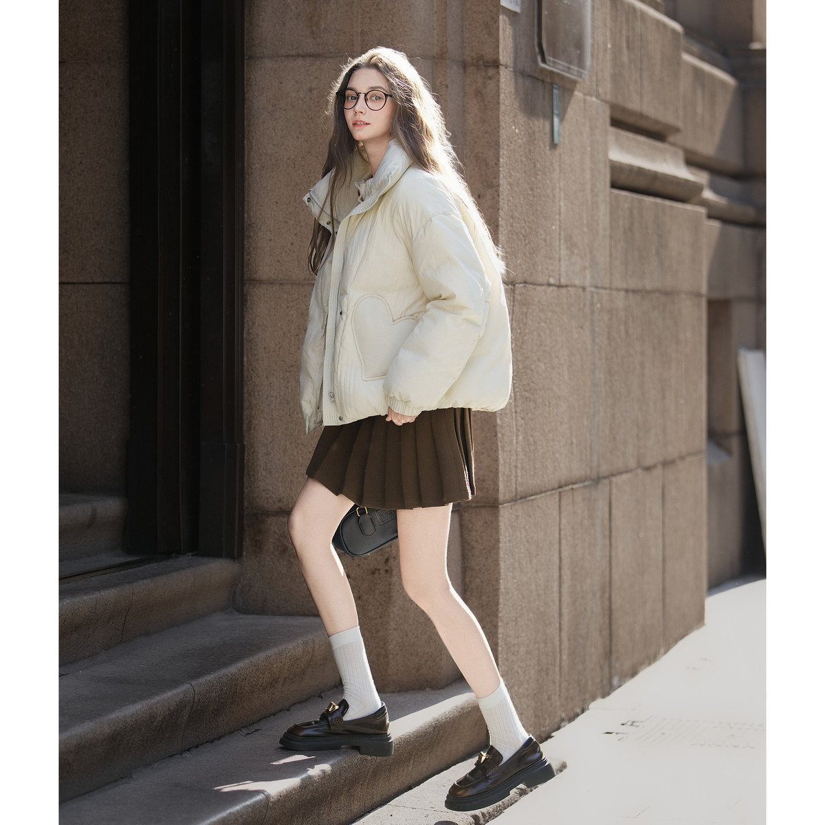 【鞠婧祎同款】鸭鸭2025年冬新款百搭短款女士纯色立领羽绒服外套