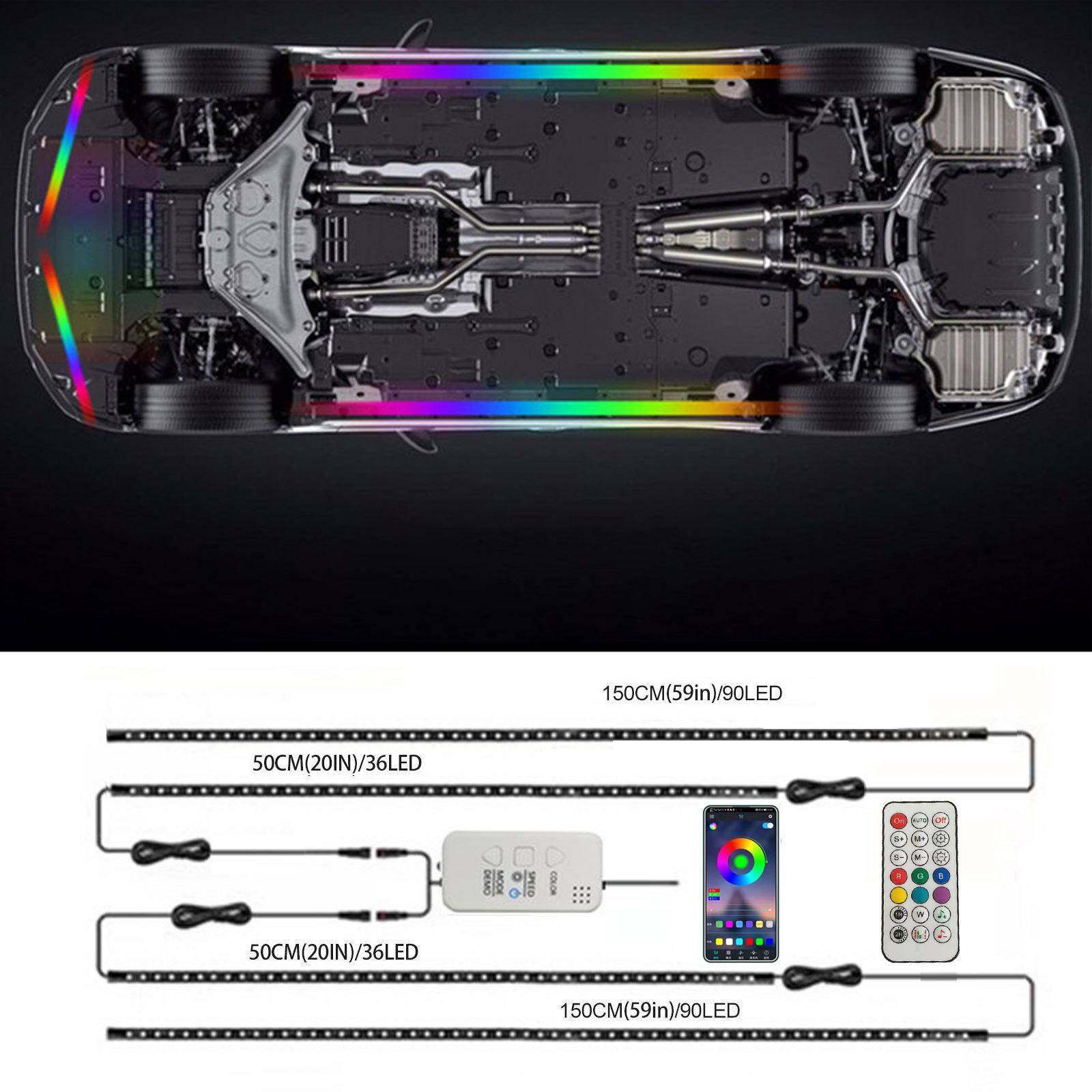 新款汽车幻彩底盘灯改装七彩APP流光跑马灯声控车底灯装饰氛围灯