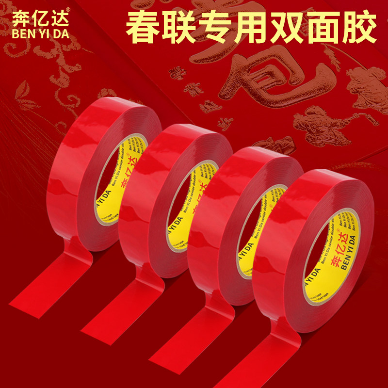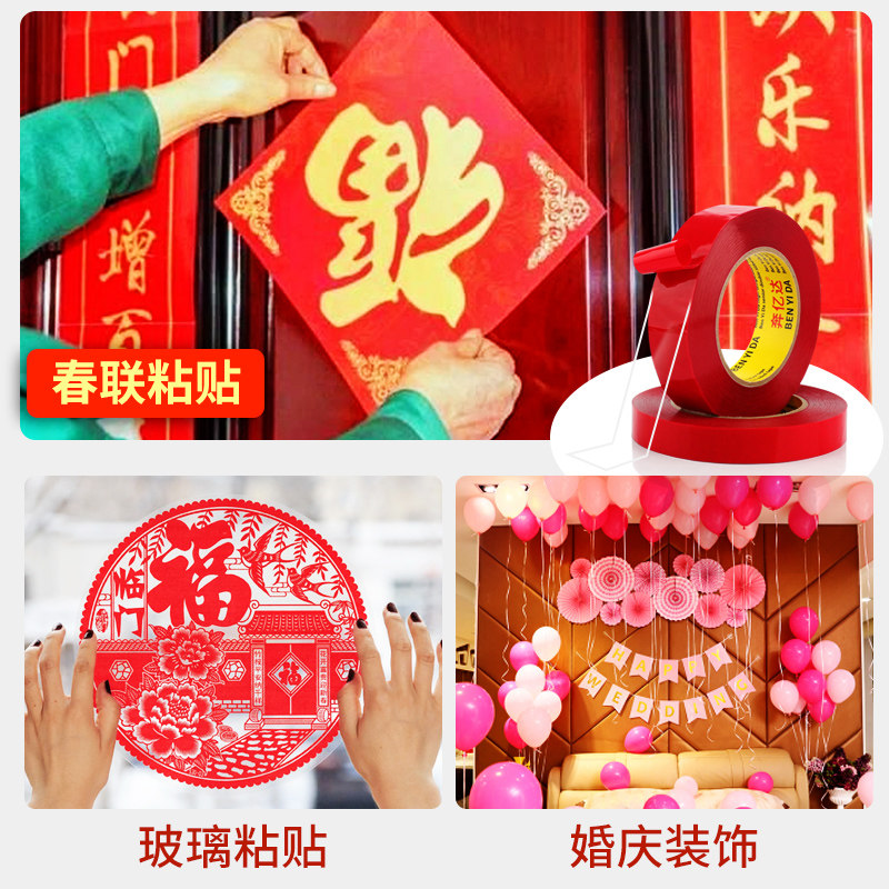 春联双面胶无痕贴强力高粘透明不留胶不伤墙固定大门对联福字喜字年画结婚气球婚车婚房布置专用神器红色胶带