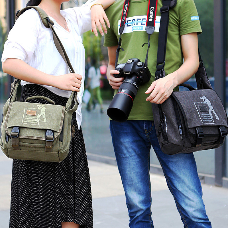 吉尼佛01308时尚帆布单肩摄影包防水适合佳能5D4尼康索尼单反相机包 斜挎 大容量休闲专业微单包 男款潮