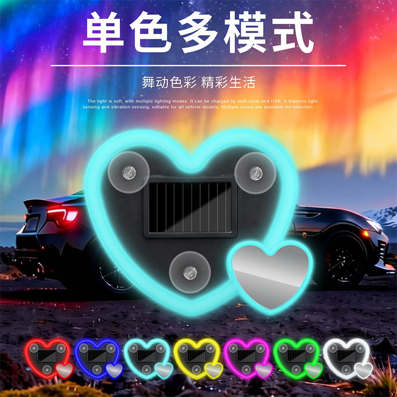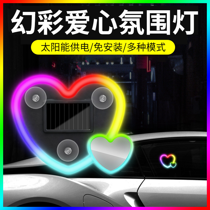 汽车三角窗太阳能爱心幻彩氛围灯车内免接线充电改装饰车载气氛灯