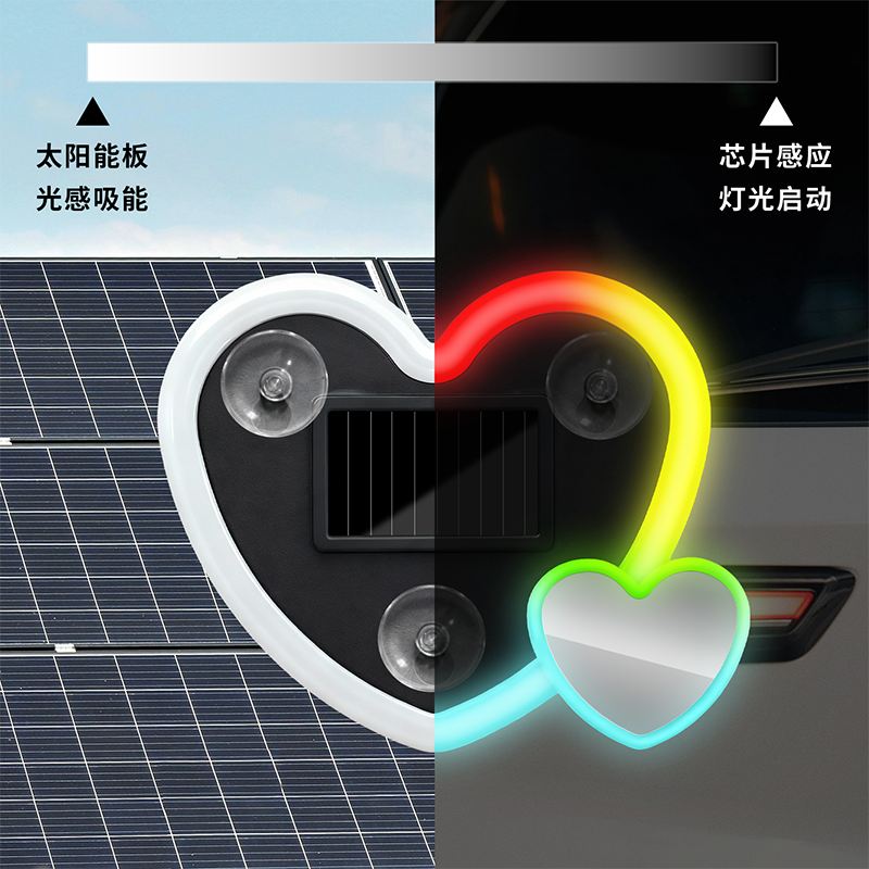 汽车爱心灯太阳能装饰灯LED警示灯三角窗后窗车载有趣可爱氛围灯