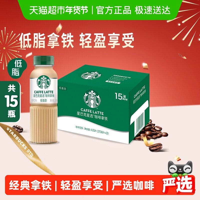 Starbucks/星巴克星选拿铁低脂瓶装整箱即饮咖啡饮料