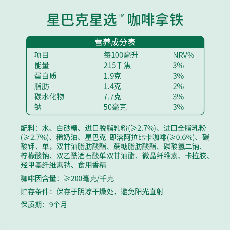 星巴克星小咖低糖拿铁200ml*9瓶即饮咖啡饮料早餐搭档便携饮品