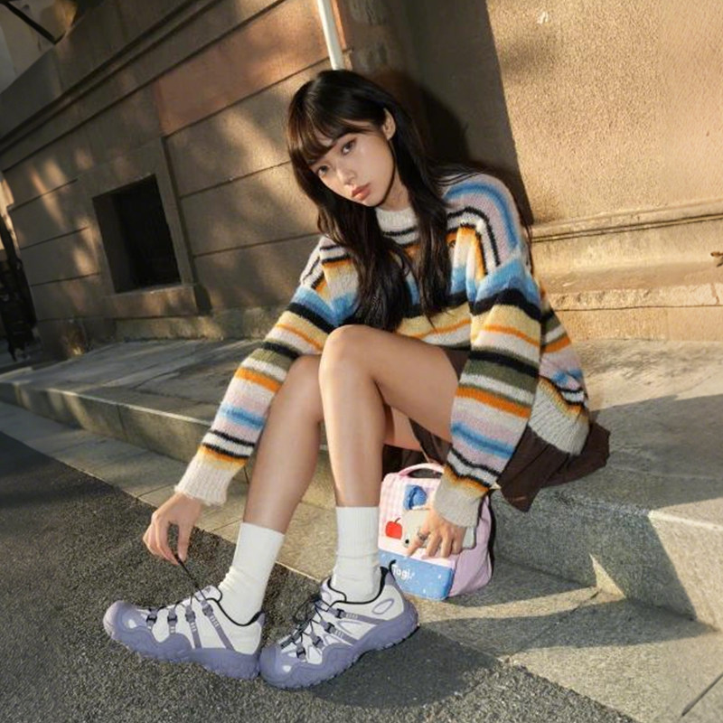 多嘴驴Donkey丑萌板鞋女冬季小众原创魔术贴小白鞋休闲厚底德训鞋