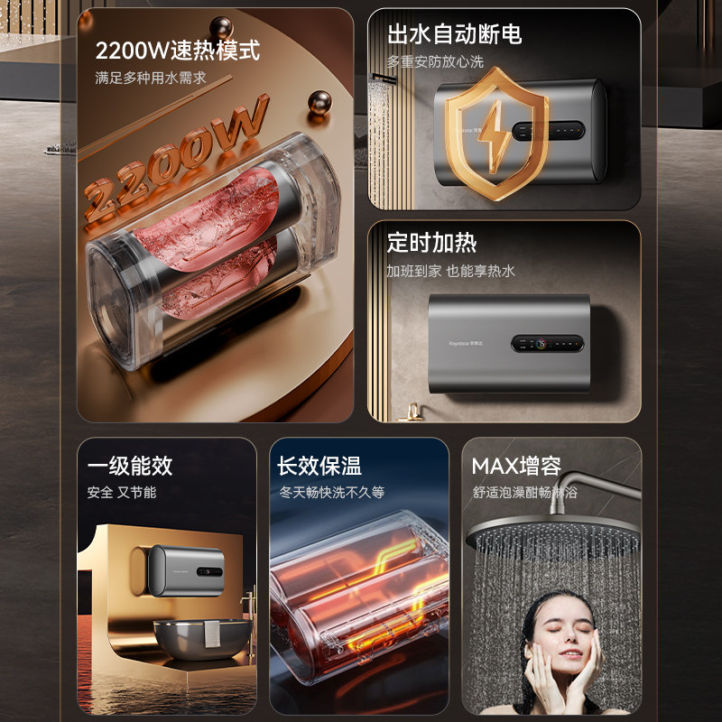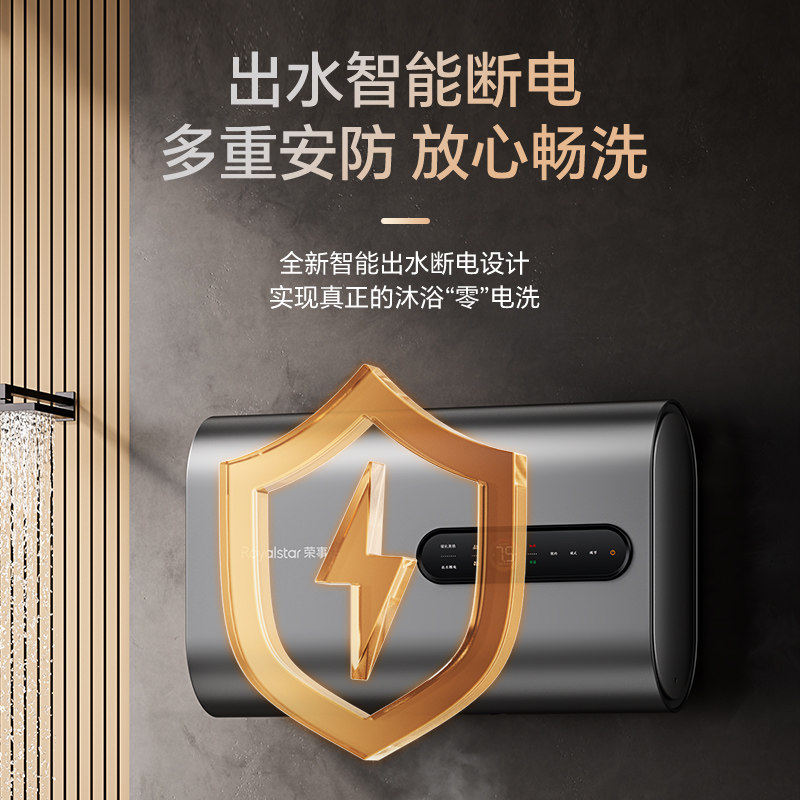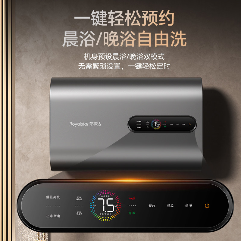 荣事达电热水器家用电一级能效扁桶储水式卫生间洗澡双胆变频速热