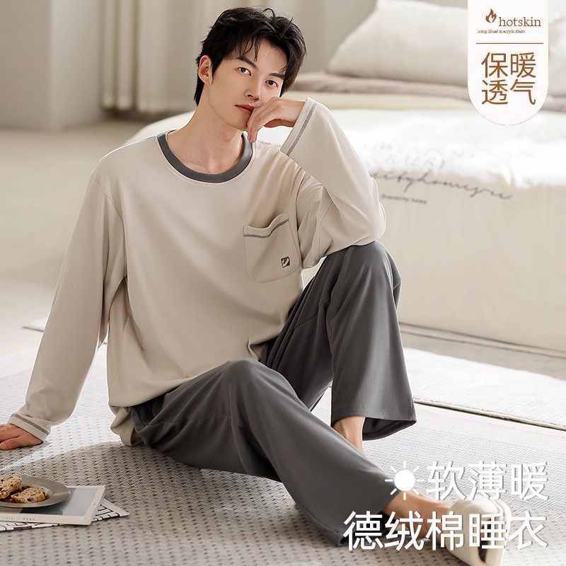 男士睡衣男款薄绒暖套装2025新款秋冬季磨毛绒德家居服德绒加绒