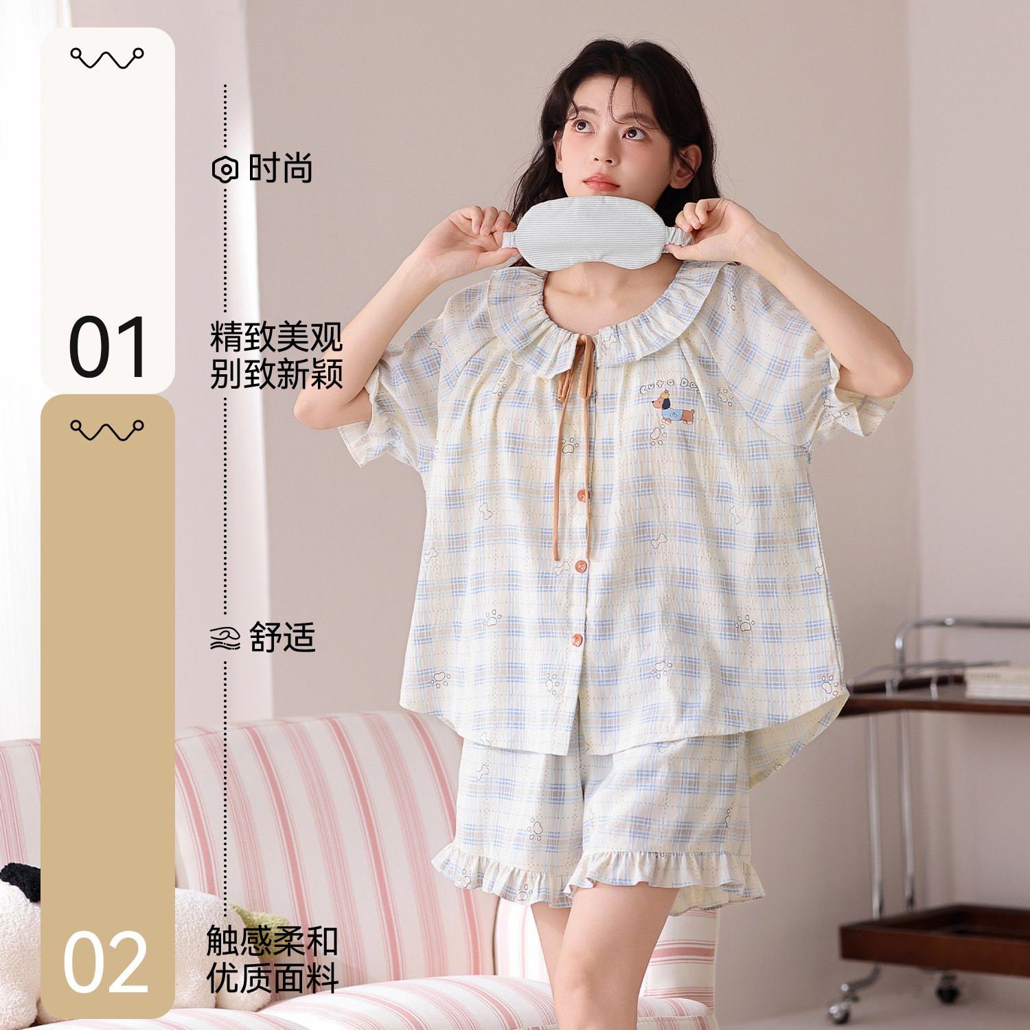 都市丽人女士睡衣云朵棉短袖短裤甜美少女2026新款甜美家居服套装