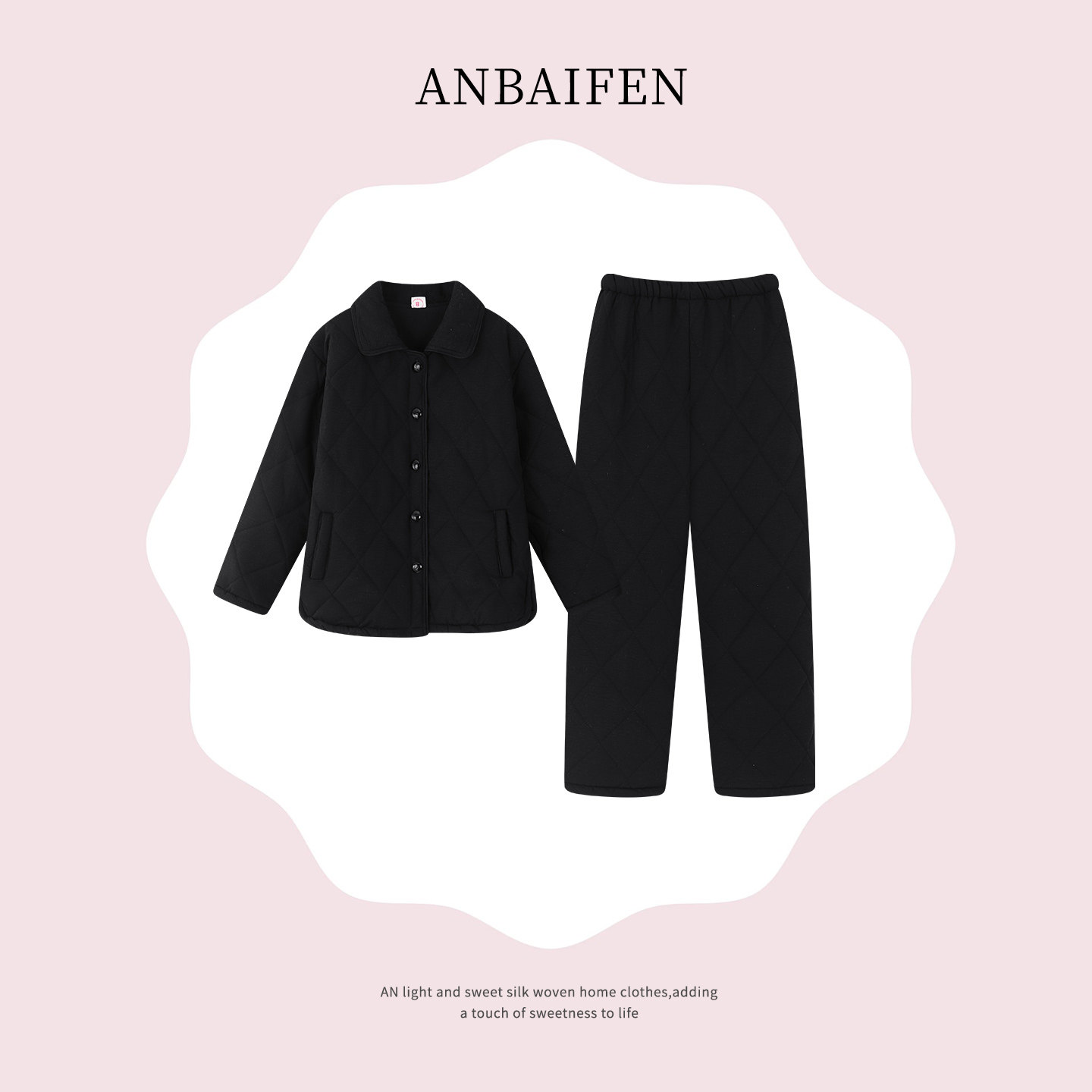 末里末【高雅黑夹棉】三层加厚睡衣女士保暖冬两件套可外穿家居服