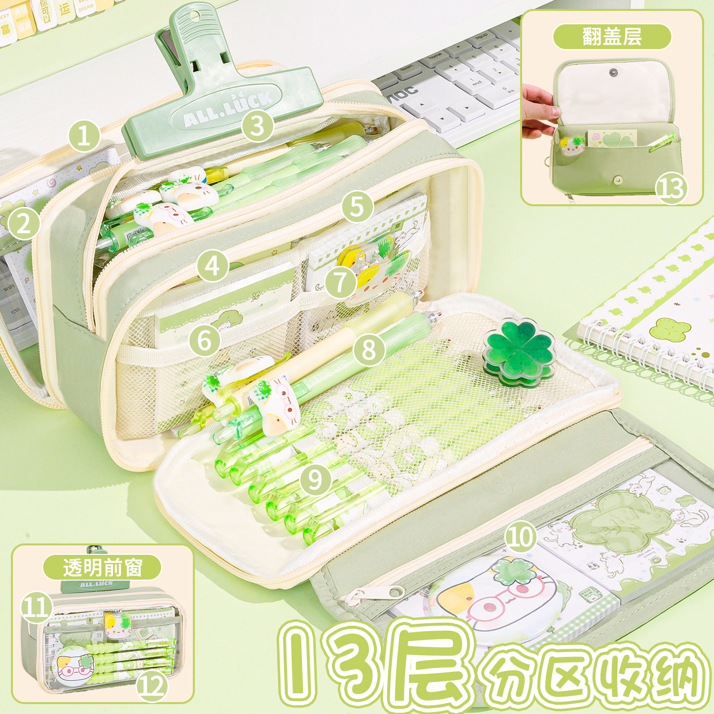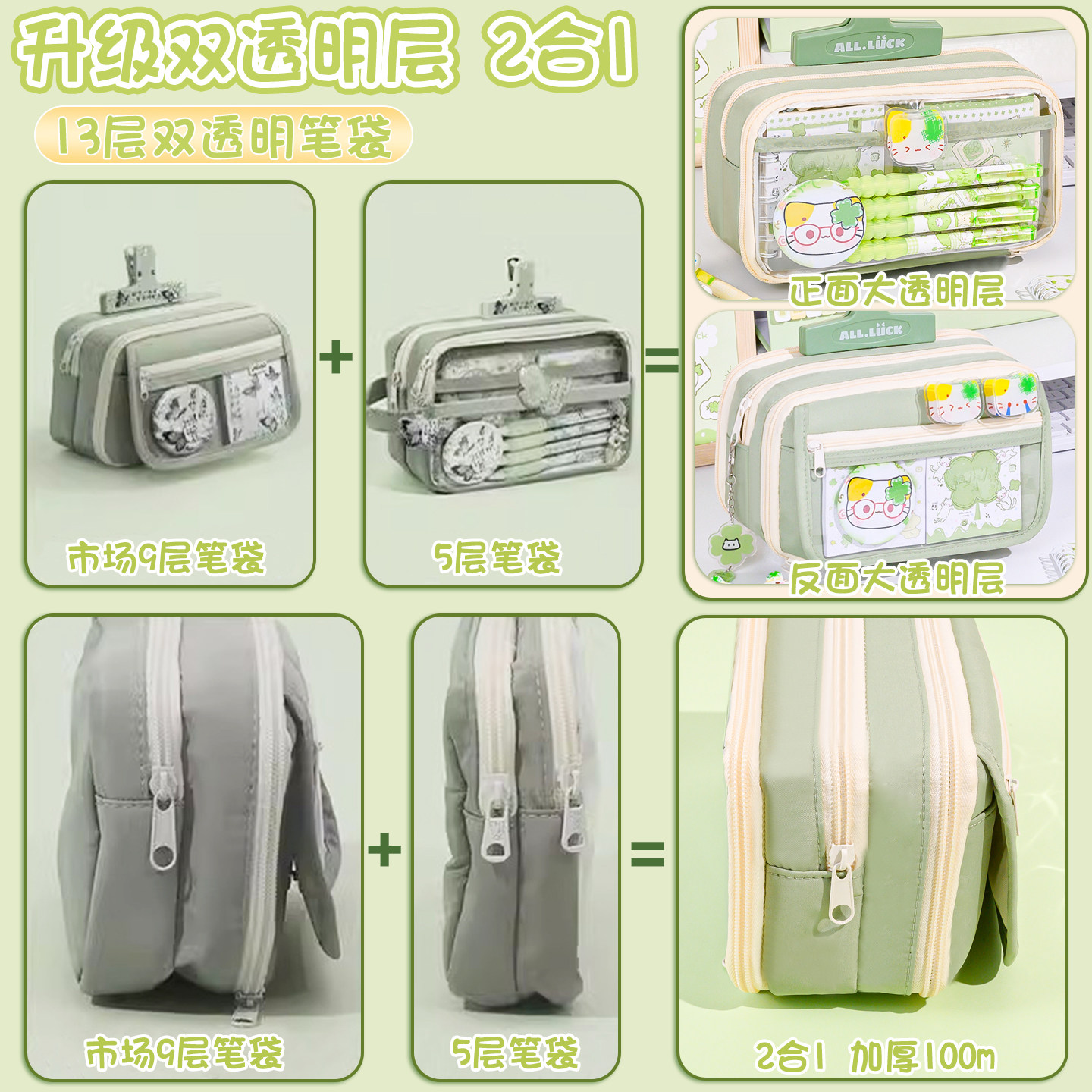 四叶草小猫笔袋套装超大容量透明痛包女生2025新款文具盒女孩款初中小学生儿童铅笔盒高颜值小众不撞款文具袋