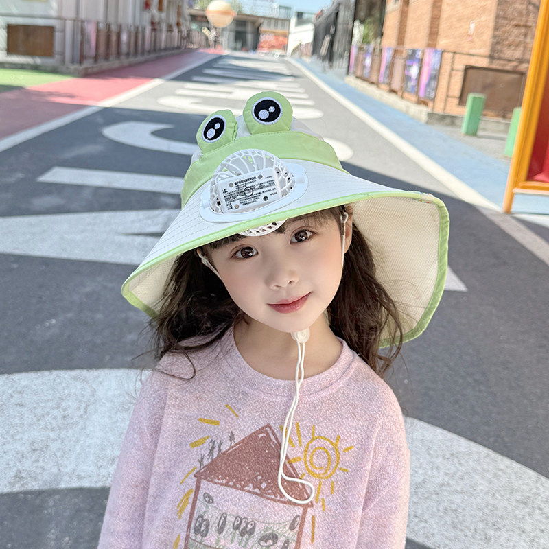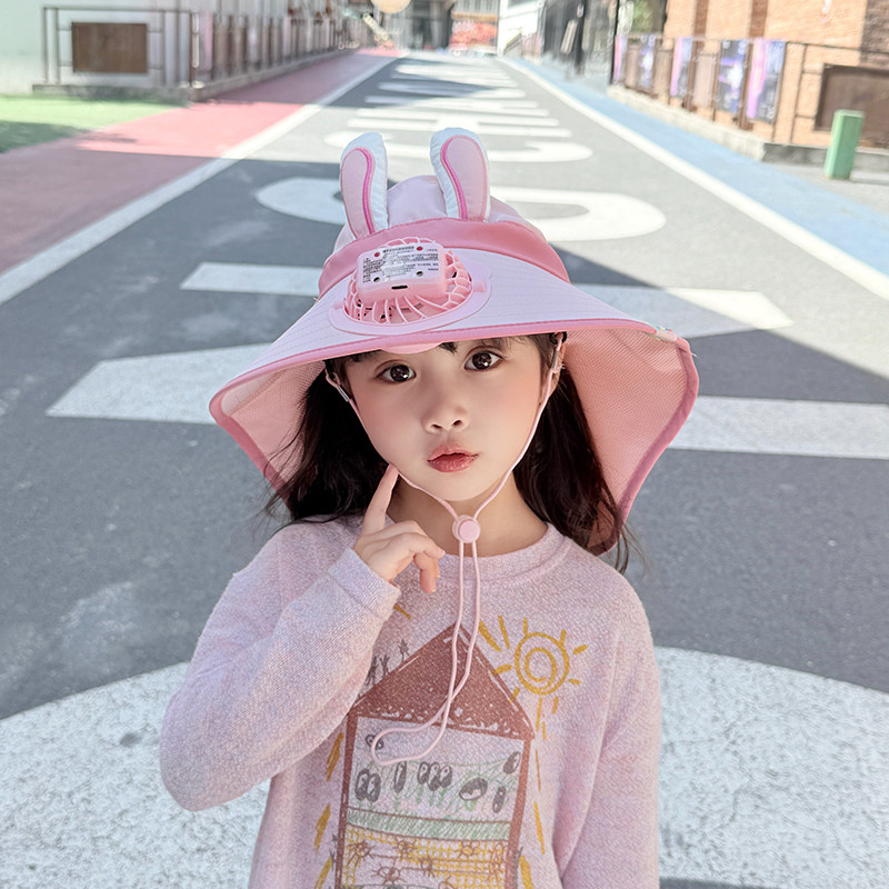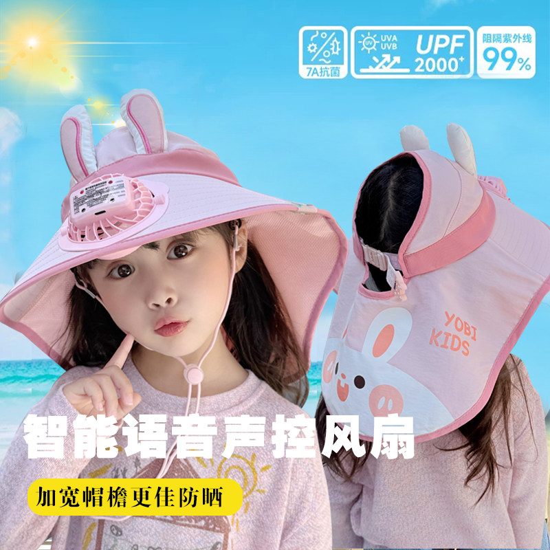 智能声控风扇帽子夏季儿童防晒遮阳帽男女童网眼透气披肩帽太阳帽