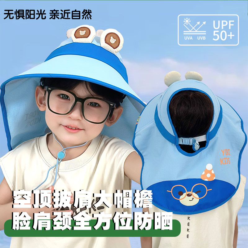 儿童防晒帽宝宝遮阳帽防紫外线男孩女童太阳帽大帽檐夏季渔夫帽子