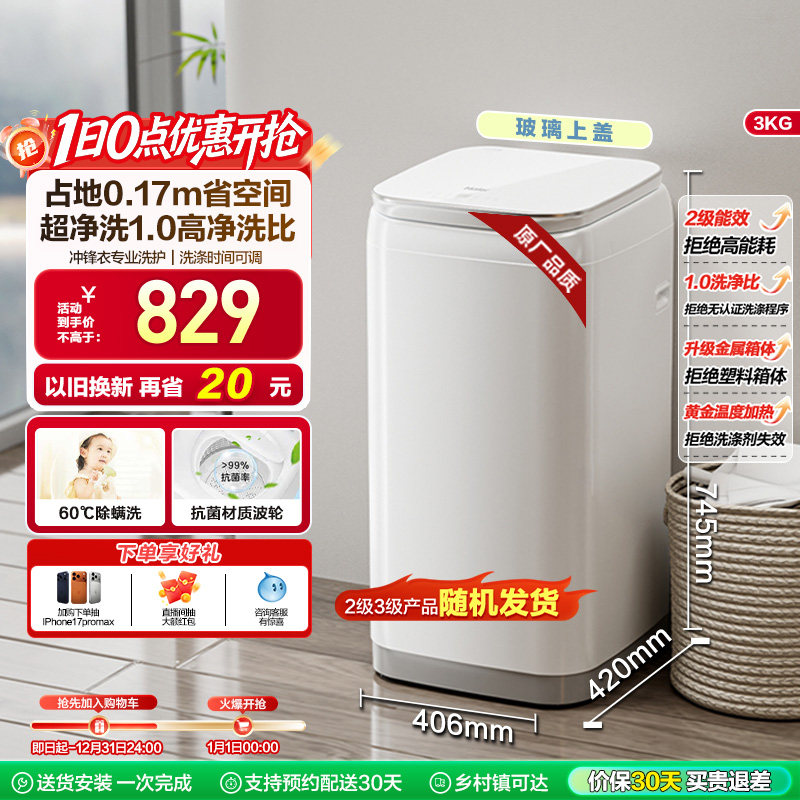 海尔3公斤家用全自动内衣儿童宝宝迷你小型婴儿波轮洗衣机R368
