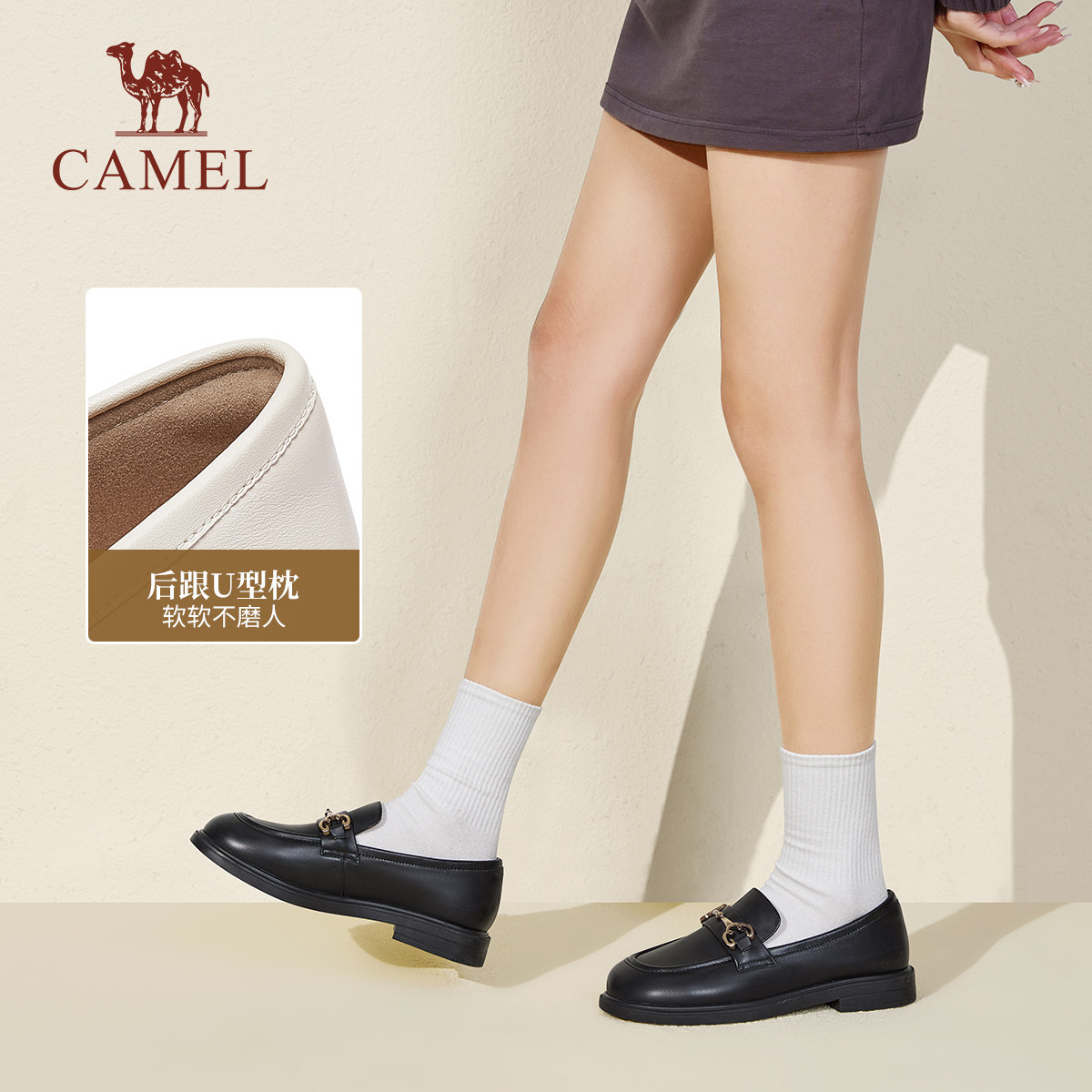 骆驼女鞋2025秋季新款真皮英伦风小皮鞋休闲通勤低跟单鞋女乐福鞋