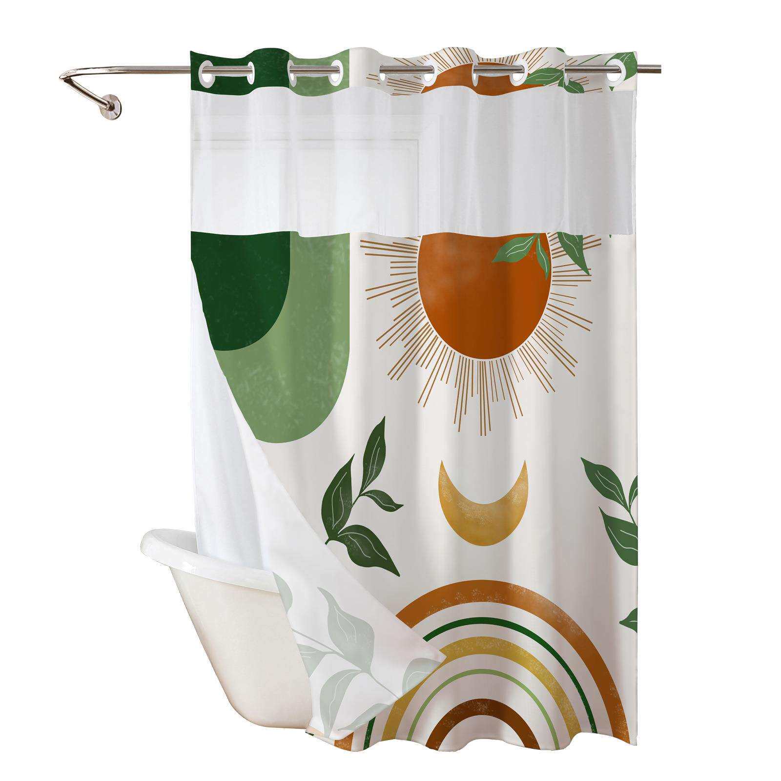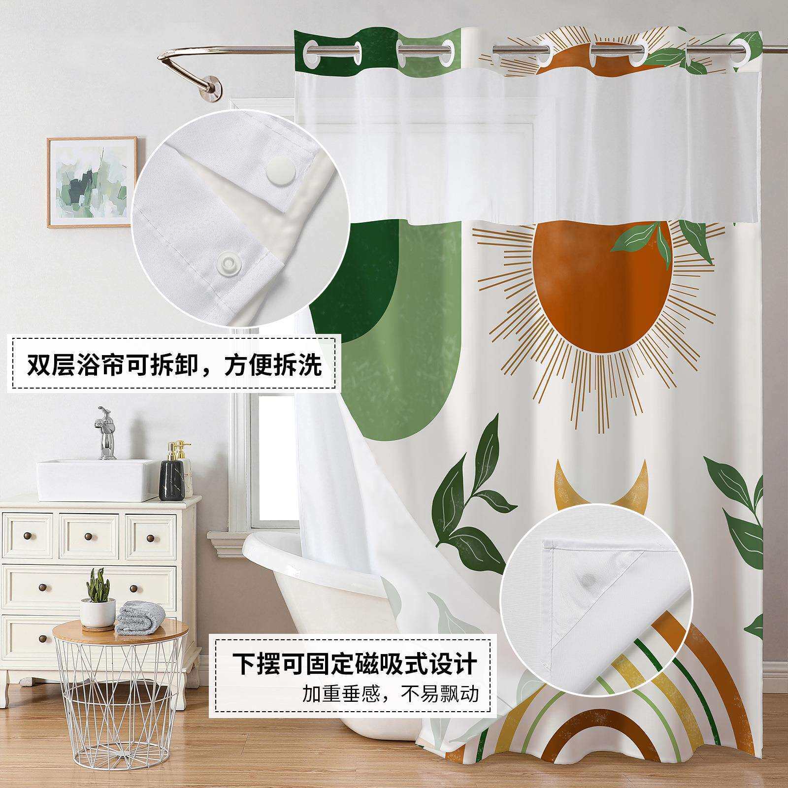 亚马逊波西米亚风双层大环数码印花浴帘防水防霉浴帘卫生间隔断帘
