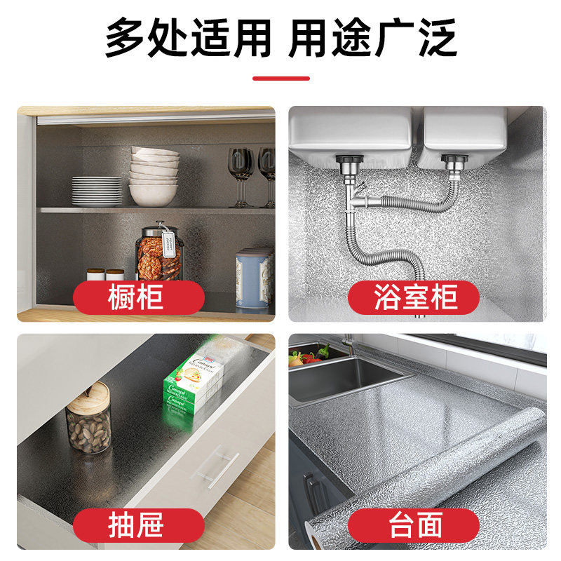 橱柜防水防油防潮贴纸抽屉垫纸灶台台面铝箔锡纸厨房柜子自粘墙纸