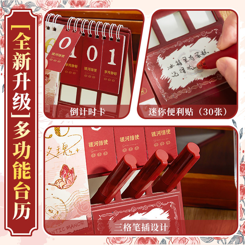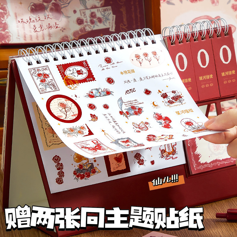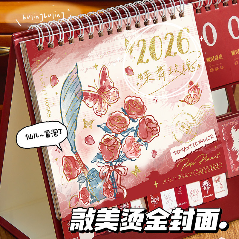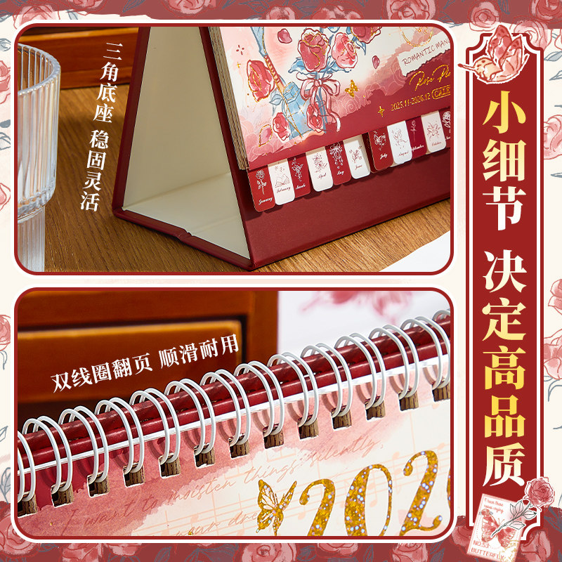 蝶舞玫瑰台历2026年日历本新款桌面摆件打卡创意周月历日程计划表本倒计时办公室工作记事马年中高考考研定制