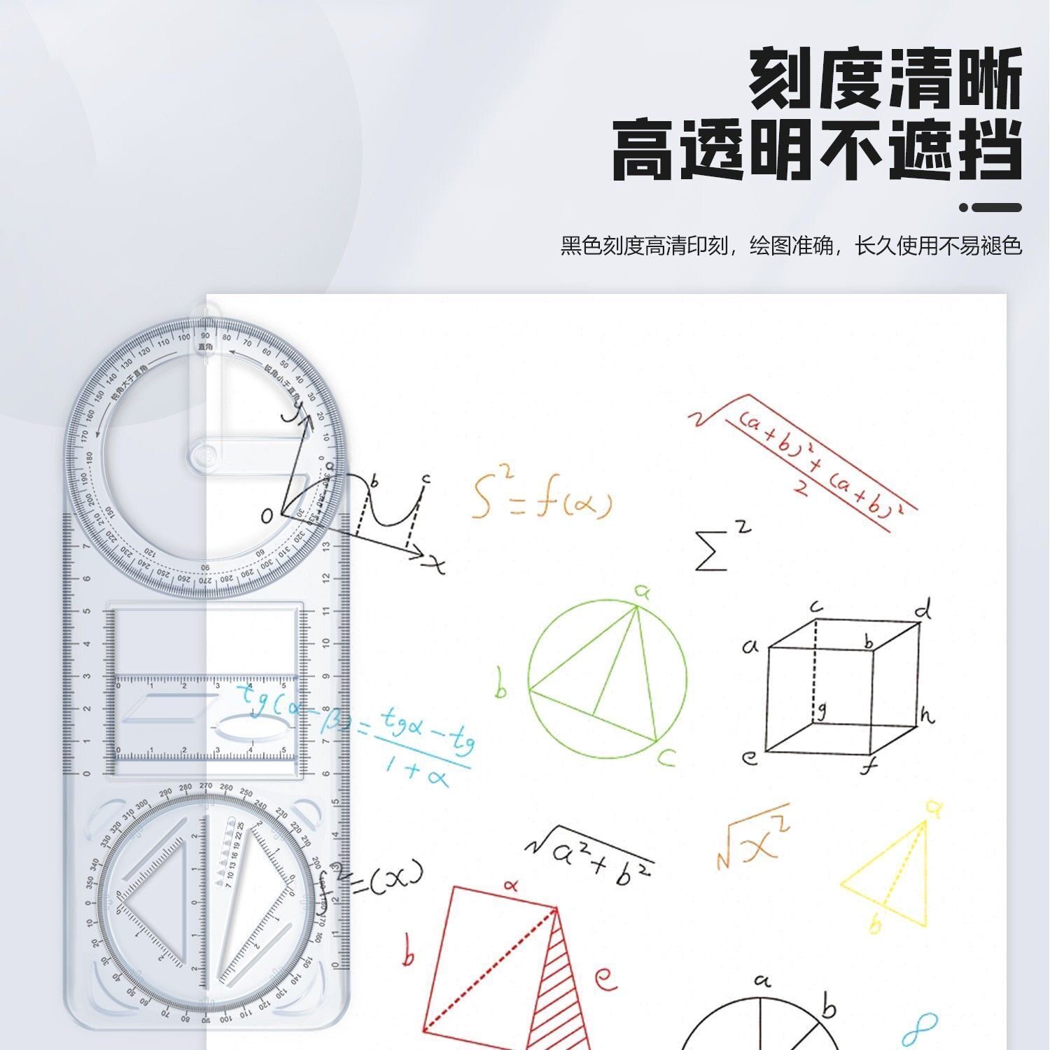 多功能几何绘图尺初中小学生活动式函数平面图形画角尺量角器模板