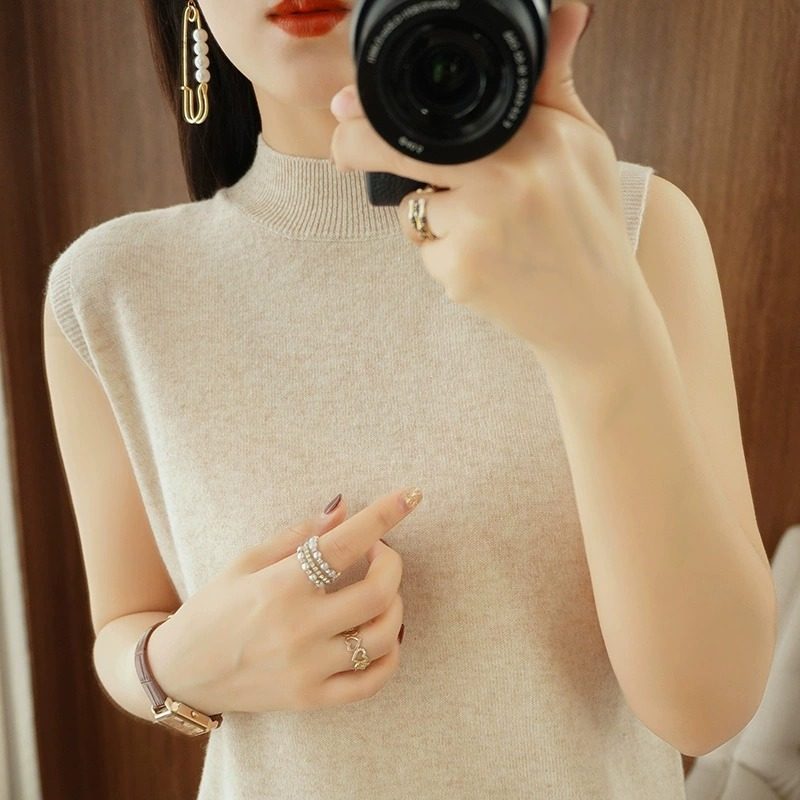 断码39元半高领羊毛背心女西装内搭外穿上衣坎肩无袖打底针织衫