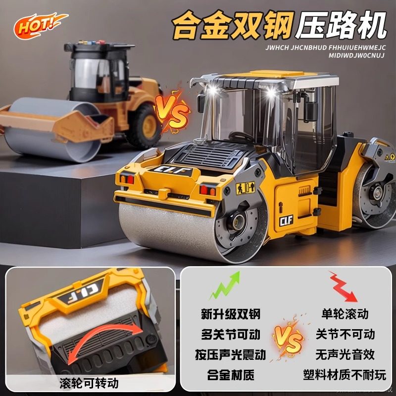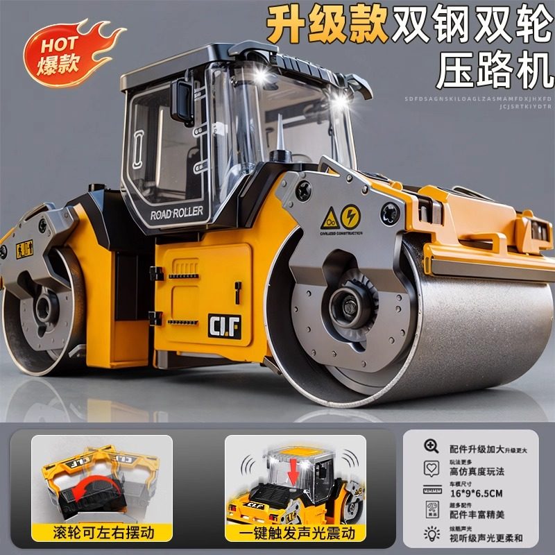 大号合金压路机玩具男孩仿真压路车挖掘机铲车工程车模型超大惯性