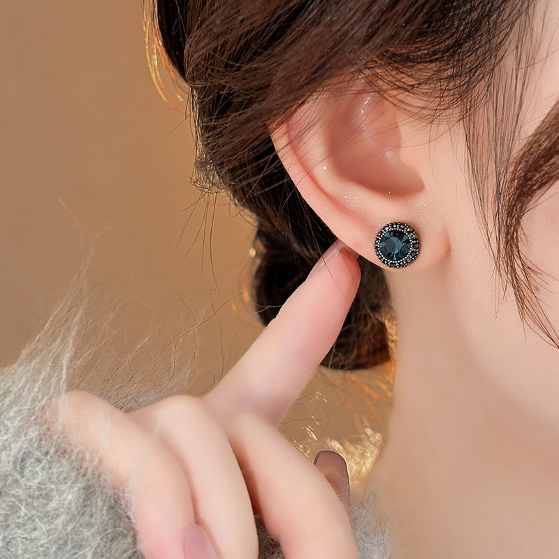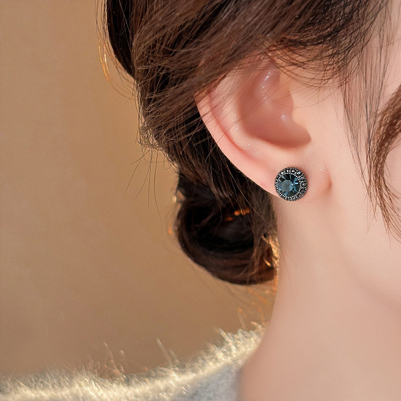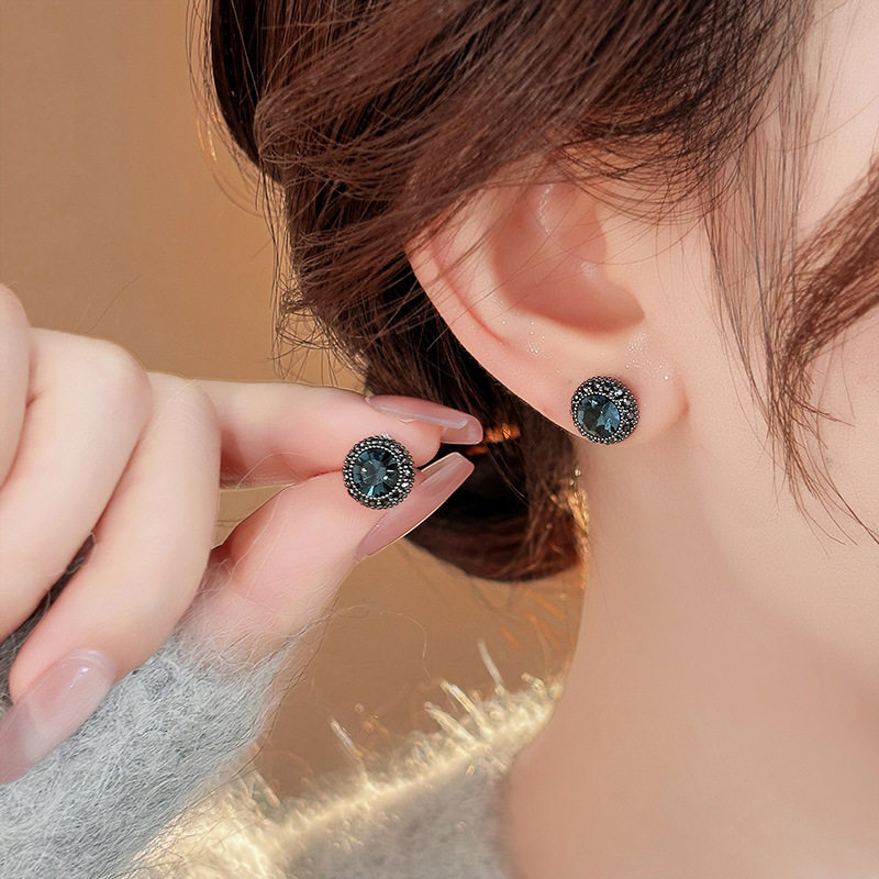 新款爆款小众设计感高级镶钻蓝色水晶耳钉女独特耳环气质耳饰