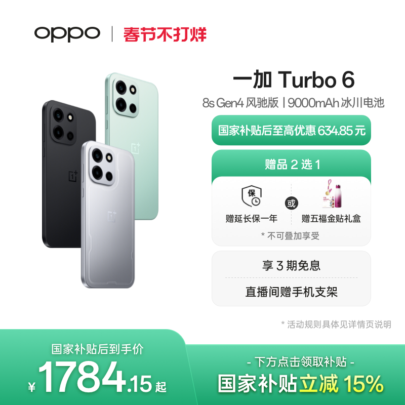 【政府补贴】OPPO 一加 Turbo 6 电竞三芯 9000mAh 冰川电池学生电竞AI游戏手机OPPO官方旗舰店官网正品国补