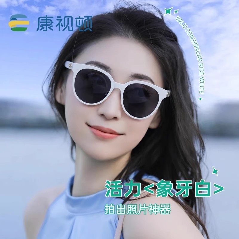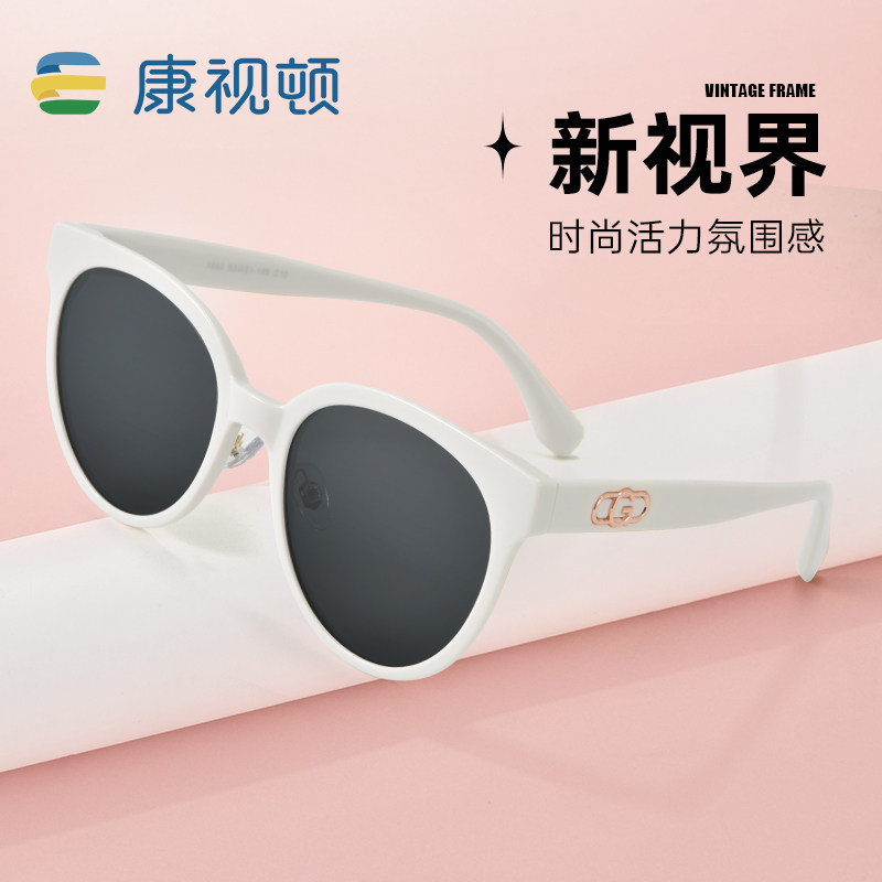 康视顿墨镜女偏光高级感潮流白色框防晒太阳镜女圆形框眼镜1853