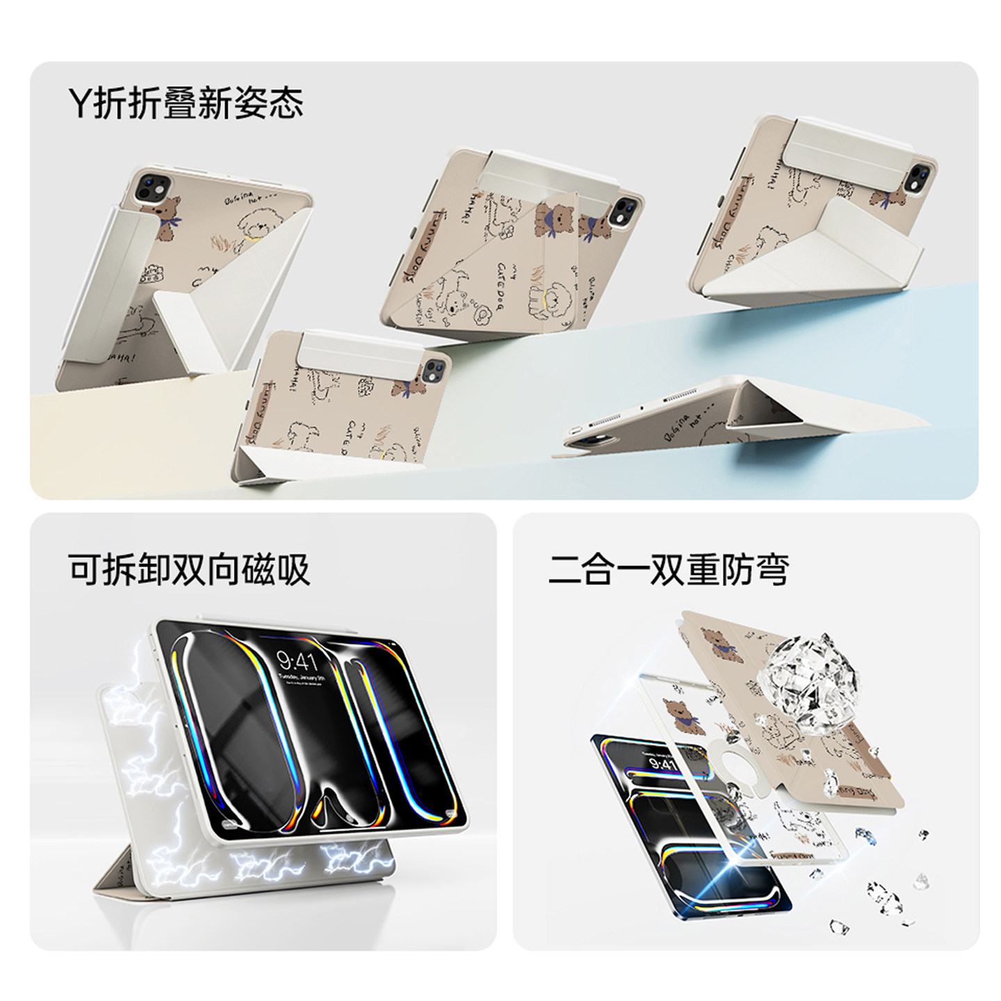 新款ipad保护壳适用苹果电脑ipadpro保护套air7磁吸拆分6轻薄透明平板壳带笔槽11寸旋转支架13外壳全包防护壳