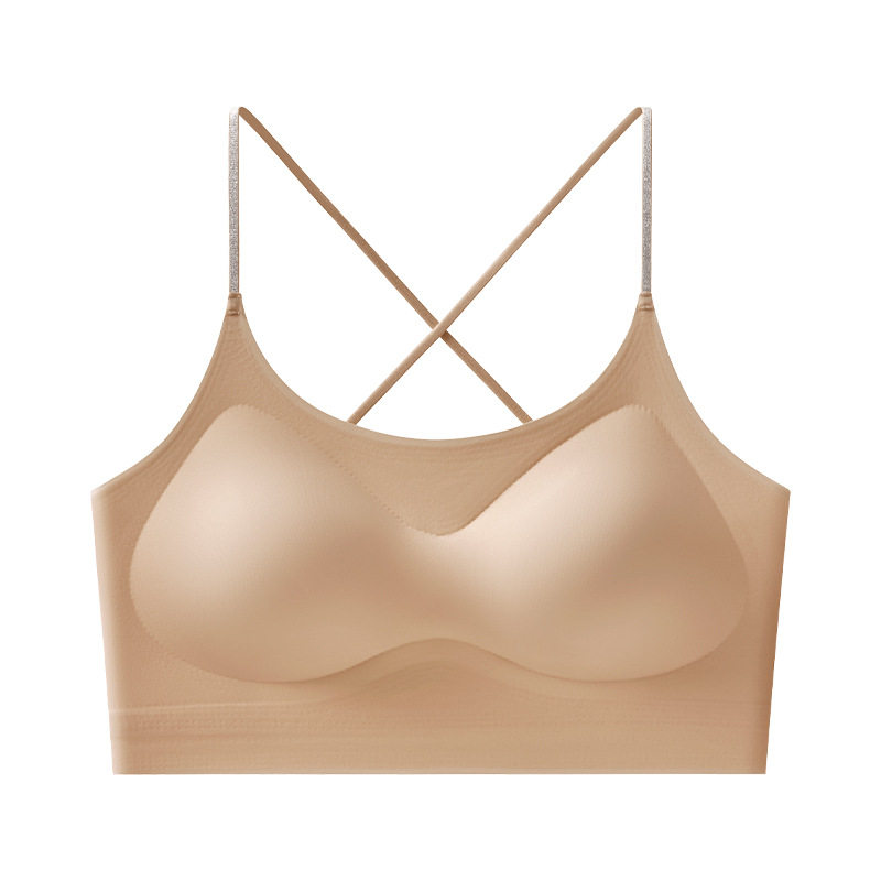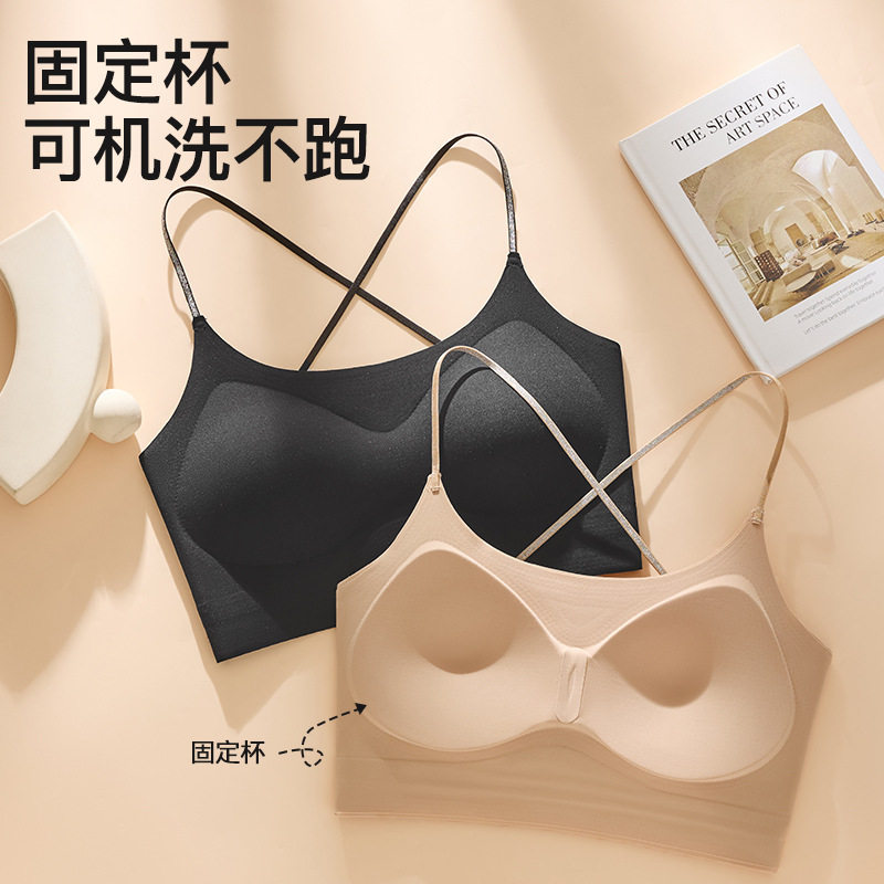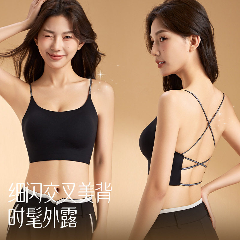 3CM加厚胸垫固定杯细闪肩带交叉美背无痕裹胸性感抹胸无钢圈内衣