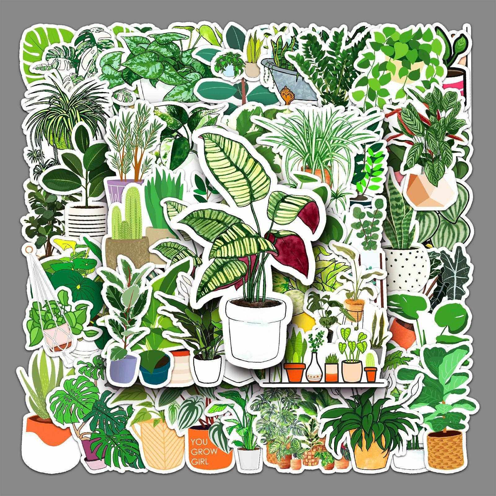 新款直销50张绿色植物创意贴纸滑板行李箱贴纸笔记本电脑汽车摩托