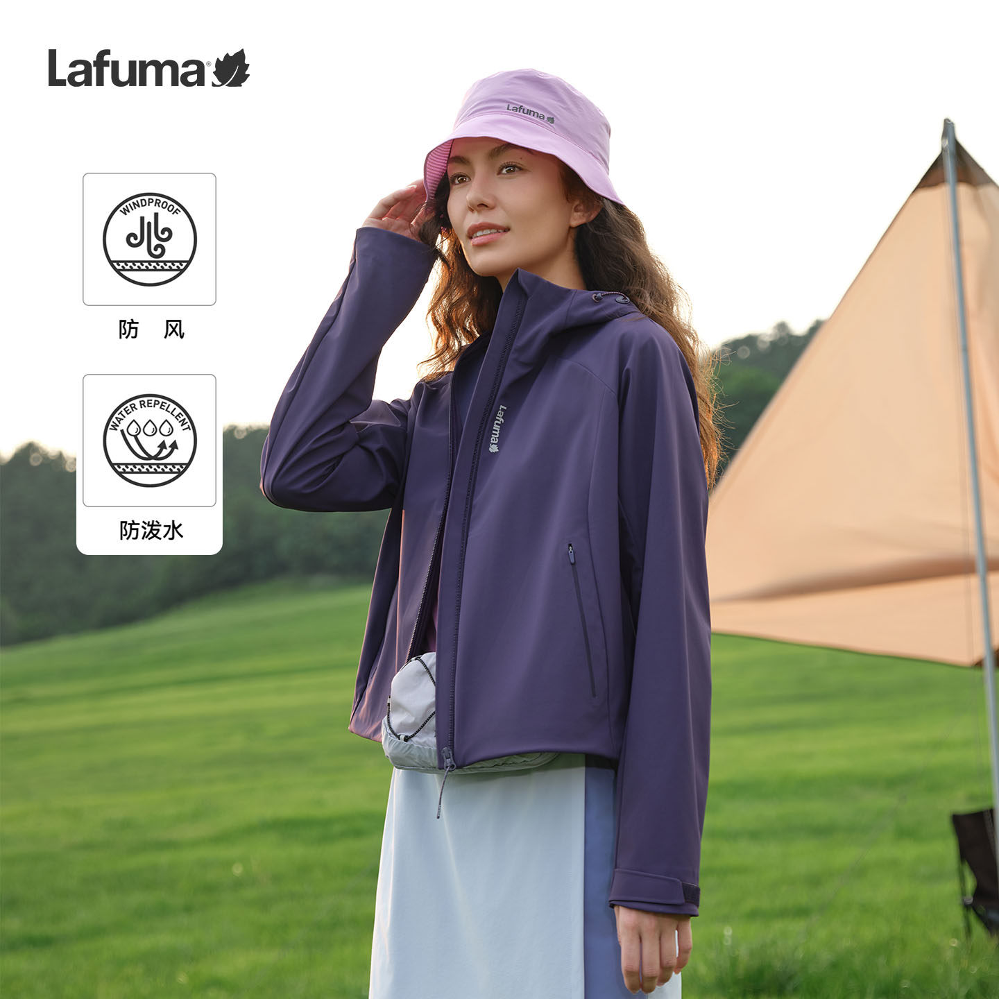 LAFUMA乐飞叶户外运动风连帽防风防泼水软壳外套女士短款休闲夹克