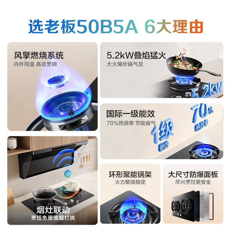 老板双子星E2P抽吸油烟机燃气灶具一套装家用厨房官方旗舰店正品