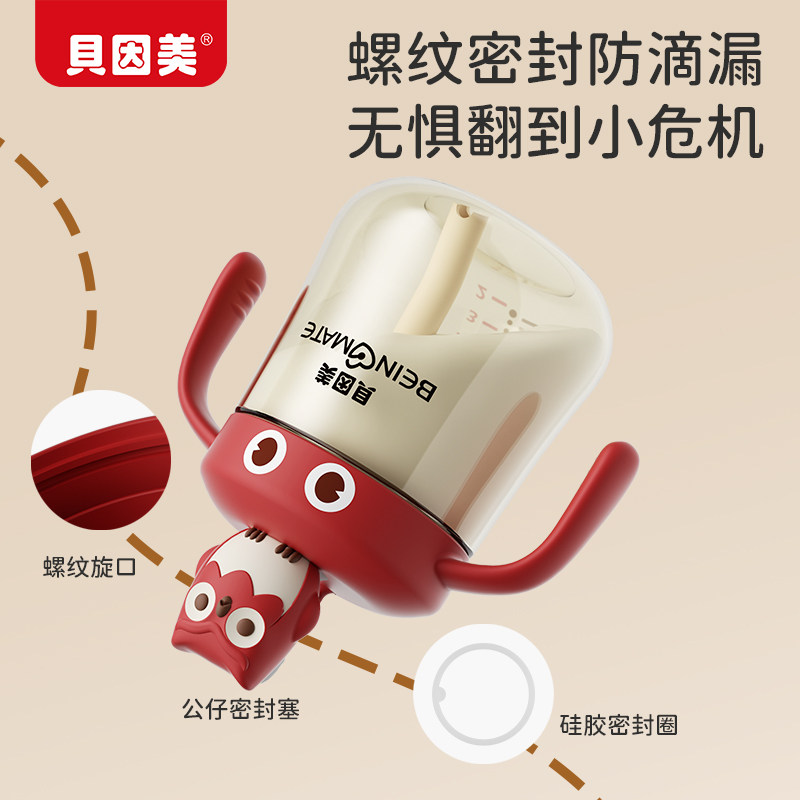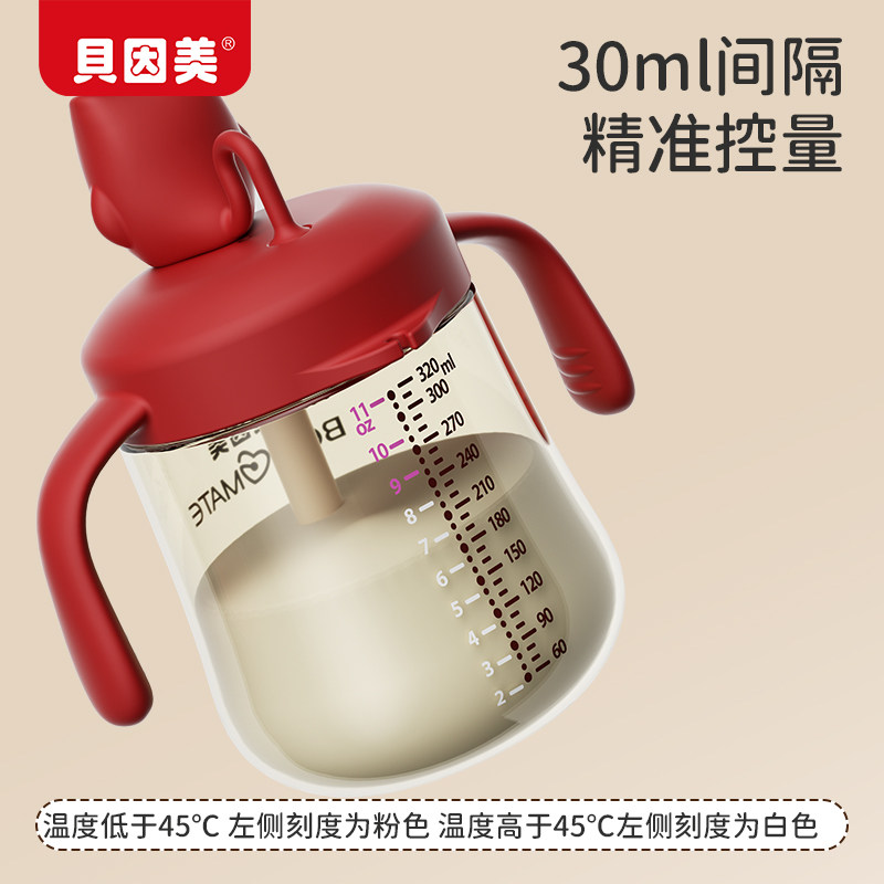 贝因美儿童牛奶杯吸管家用奶瓶PP宝宝直饮刻度牛奶1-3岁喝水杯子