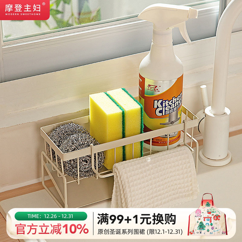 摩登主妇抹布沥水架厨房家用不锈钢海绵水龙头洗碗水槽收纳置物架